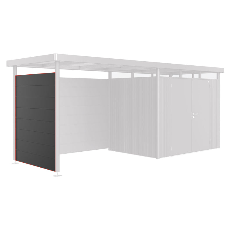 Perete lateral acoperiș Highline. Peretele lateral pentru acoperiș din gama Highline vă oferă o posibilitate de a vă extinde spațiul de depozitare a accesoriilor sau aparaturii pentru grădină. Acesta este realizat din placă de oțel acoperit cu poliamidă galvanizată la cald și include șuruburi și balamale din oțel inoxidabil.