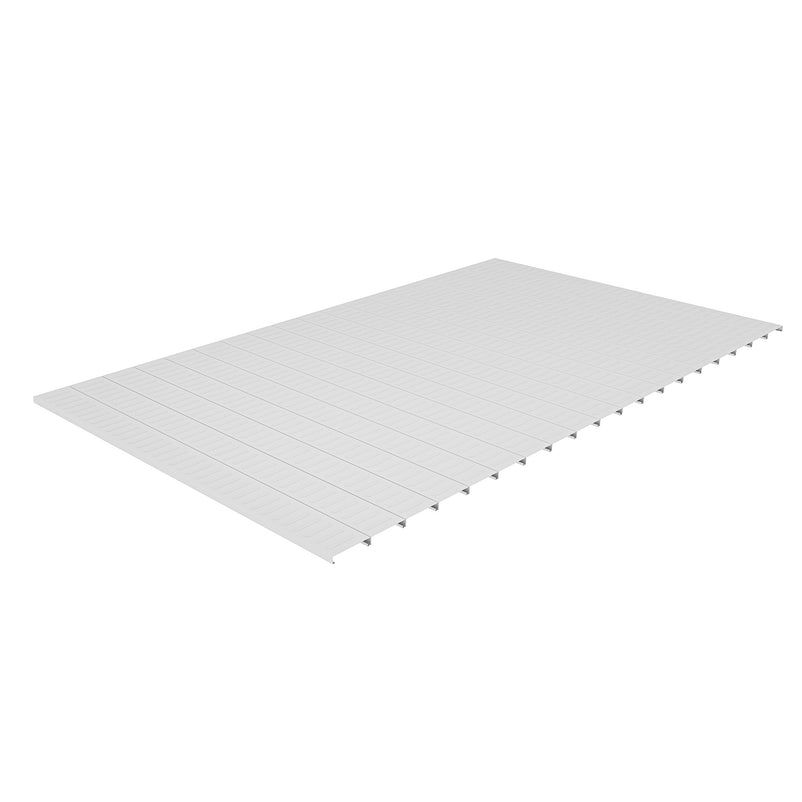 Podea magazie Avocado. Podeaua metalică galvanizată de 1mm, realizată din oțel tratat prin imersie la cald, oferă o bază robustă și rezistentă la coroziune pentru magazia AVOCADO. Aceasta asigură stabilitate și protecție împotriva intemperiilor, fiind ideală pentru suportul greutății obiectelor depozitate, inclusiv biciclete, unelte sau echipamente. Designul său durabil și rezistent face ca această podea să fie o alegere excelentă pentru orice spațiu de depozitare ce necesită o fundație sigură și de lungă durată.