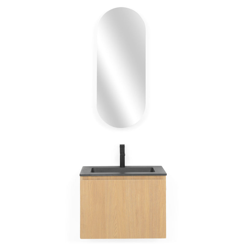 Set mobilier baie, mască lavoar, dulap suspendat și lavoar Bruno. Dur, elegant și sublim — așa ați putea descrie designul gamei de mobilier Bruno. Finisajul nervurat al fronturilor dulapului emană o atmosferă luxoasă și elegantă!