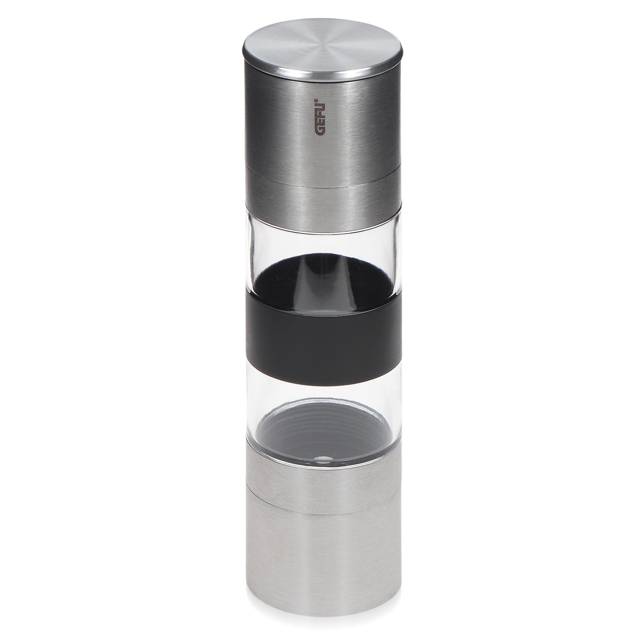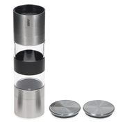 Râșniță dublă sare piper Lamola. Această râșniță ceramică de înaltă calitate este complet reglabilă și dispune de o cameră de depozitare ușor de umplut pentru condimente. Capacul cu sigiliu pentru aromă ajută la menținerea prospețimii condimentelor.