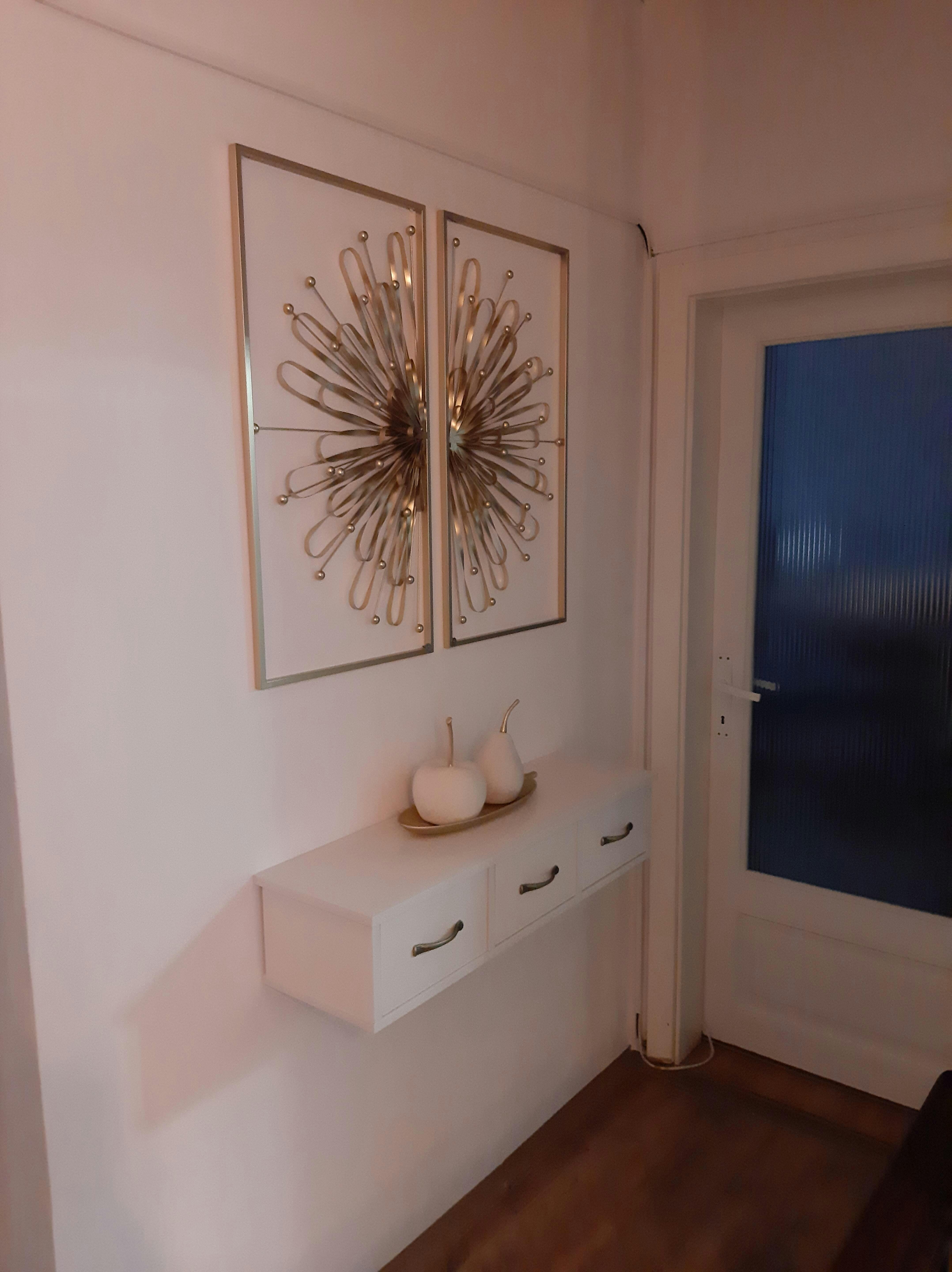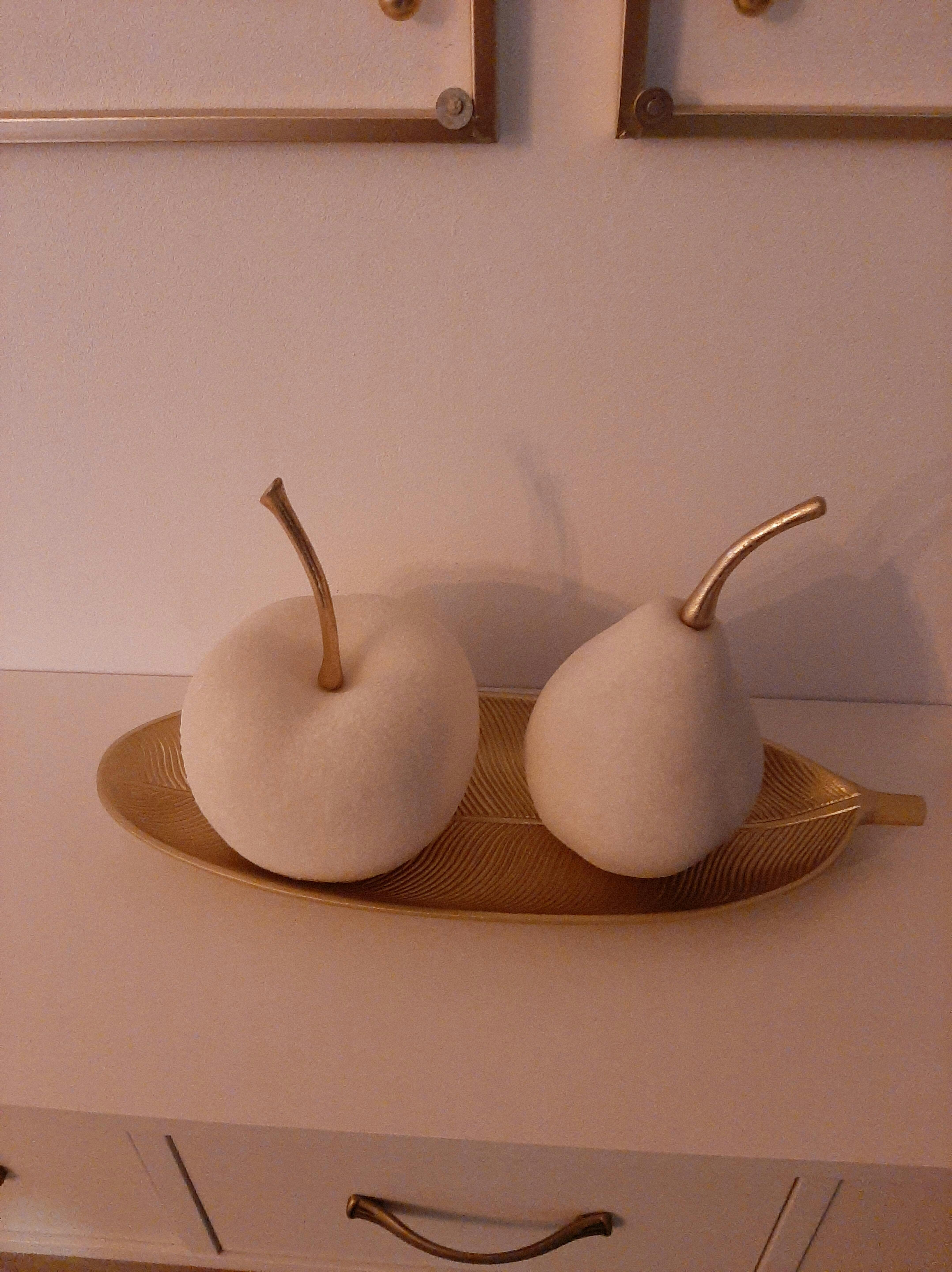 Am achiziționat mărul și para din aceeași colecție. Sunt frumoase, de impact vizual. Nu sunt chiar așa albe cum sunt pe site, dar sunt de calitate. Mărul este mai ușor ca greutate, parcă gol pe dinăuntru, para este foarte grea, zici că e din piatră. Deci, par a fi realizate din materiale diferite. Și-au găsit locul pe un raft plutitor și arată foarte bine. Ornamentul de perete este tot de pe site, dar momentan nu este pe stoc.