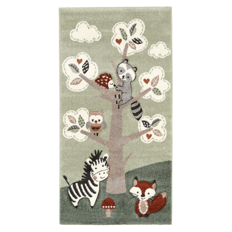 Covor cameră copii Happy Tree. Universul copilului vostru este menit să îi stimuleze creativitatea și buna dispoziție, iar covorul din gama Happy Tree este ideal pentru ca cel mic să aibă mereu zâmbetul pe buze. Realizat din materiale de cea mai bună calitate și țesut mecanic, acesta va fi punctul de tracție din cameră. De asemenea, spatele este fabricat din iută, asigurând aderență și siguranță celor mici.