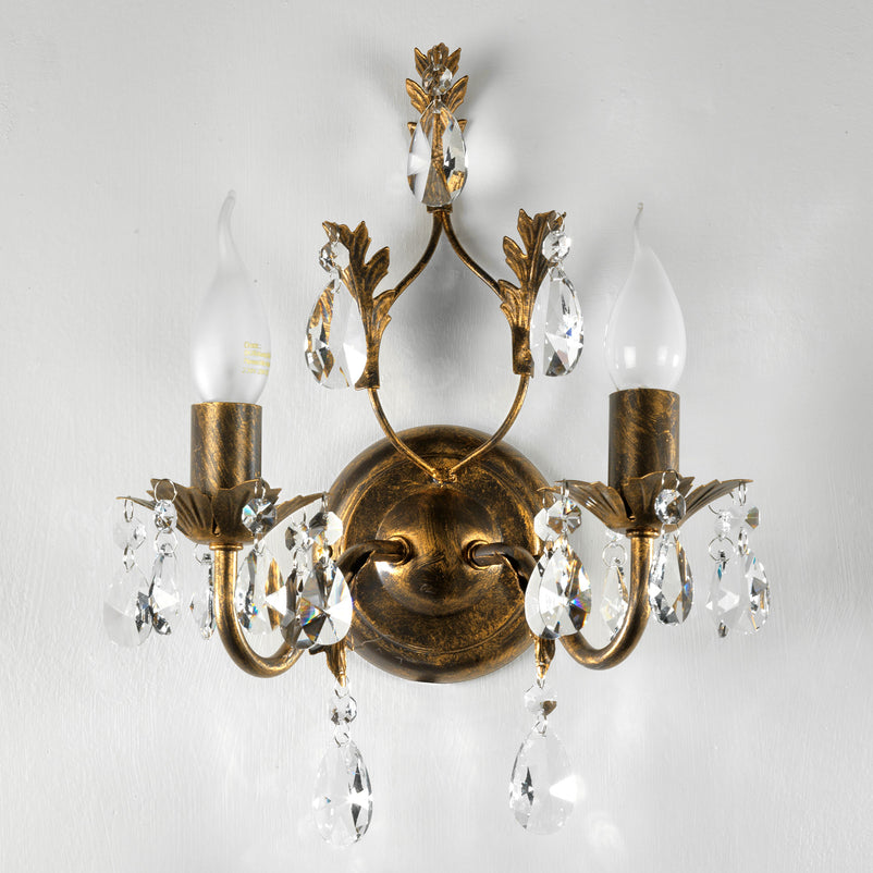 Aplică Teresa. Decorați încăperea cu multă creativitate și eleganță mulțumită aplicei din gama Teresa, realizată din metal, cu finisaj antichizat și cristale care îi oferă un aspect prețios. Designul piesei integrează elemente de inspirație florală pe lungimea suportului, creând-i un aspect asemănător cu cel al tulpinii unei plante. Lumina proiectată pune în valoare cristalele decorative ale suportului, luminând camera în tonuri atmosferice.