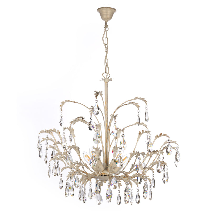 Lustră Cesta. Livingul vostru iese în evidență prin atmosfera luxuriantă creată de lustra din gama Cesta. Designul unic al piesei, inspirat de grația penelor păsării lira, primește nota de unicitate, cristalele, care produc un efect deosebit de strălucire în bătaia luminii, transformând încăperea într-un spațiu în care să vă relaxeze și care să vă bucure estetic.