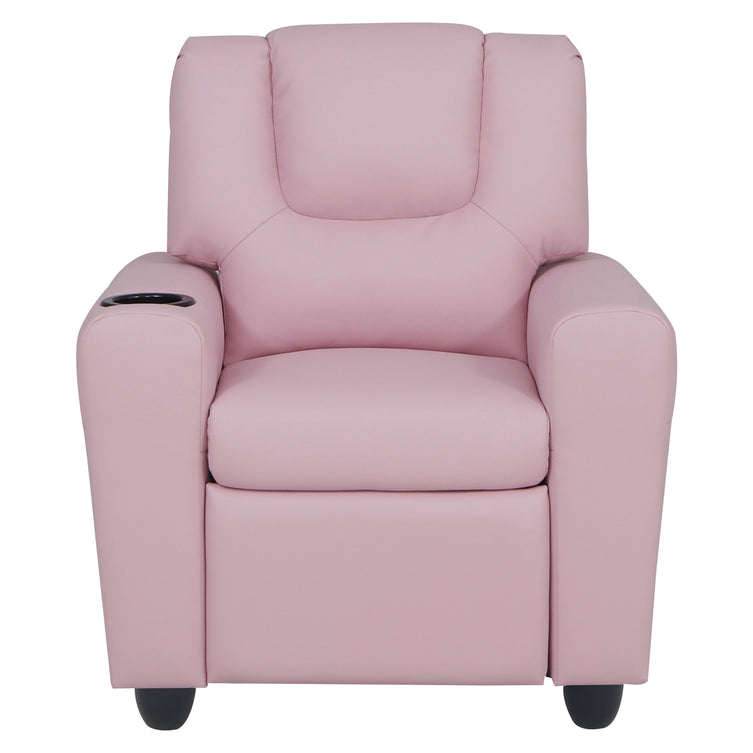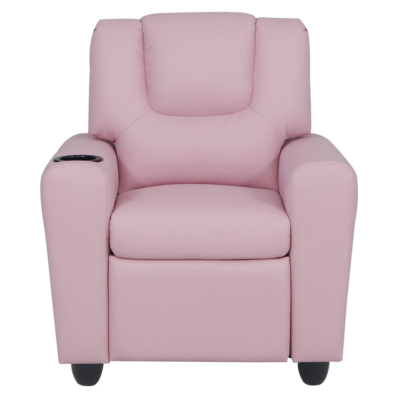 Fotoliu copii, imitație piele Lovely One. Creat din dragoste pentru copii, cu forme rotunjite și materiale rezistente, fotoliile din această colecție sunt destinate celor mici, pentru ca aceștia să se simtă iubiți și răsfățați. Designul și dimensiunile sale îl recomandă ca fiind ideal pentru camera sau spațiul în care prichindelul se joacă sau se relaxează. Cadrul este realizat din lemn masiv, acoperit cu spumă poliuretanică de înaltă densitate, tapițat cu imitație de piele. Fotoliul are mecanism metalic de rabatare a spătarului pe spate și a suportului pentru picioare, de tip „push back”, asigurând o poziție confortabilă. Este dotat cu suport pentru pahare. Fotoliul Lovely One se recomandă a fi utilizat de către copii cu vârste între 3–8 ani, greutatea maximă admisibilă fiind de 45 kg.