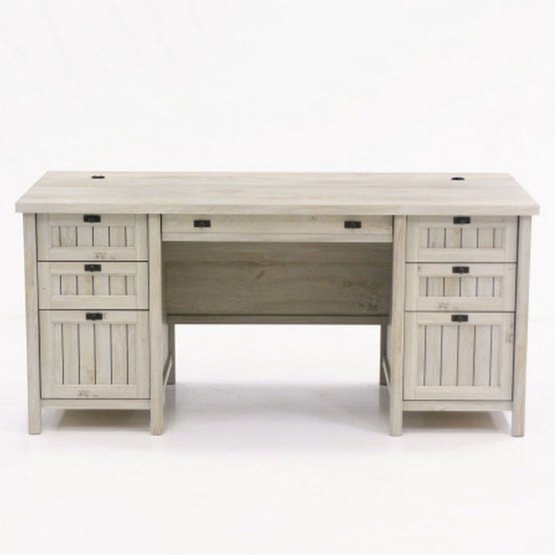 Birou Costa. Completarea spațiului de lucru de acasă cu un birou din gama Costa trebuie să fie prioritară dacă vă doriți un dormitor mobilat elegant. Biroul este finisat în stejar albit pe toate părțile conferindu-i acestuia un aspect impecabil, blatul fiind unul rezistent și gros. Biroul poate fi amplasat oriunde în încăpere. Acesta vine cu numeroase spații de depozitare, sertare și dulapuri pentru a vă stoca instrumentele de scris, documentele și alte obiecte de ajutor pentru birou. Sertarele sunt prevăzute cu sistem de culisare metalic. Sertarele inferioare sunt echipate cu mecanism de culisare tip extracție totală și sunt prevăzute cu sistem de suspendare a dosarelor pentru o bună organizare. Mânerele metalice de culoare neagră contrastează deosebit cu materialul lemnos. Totodată, biroul este prevăzut cu două orificii care să faciliteze trecerea cablurilor pentru laptop și internet.