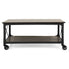 Măsuță cafea Steel River. Aspectul inedit și funcționalitatea recomandă măsuța Steel River drept piesa perfectă pentru spațiul vostru. Este realizată din panouri aglomerate din lemn și metal și are o cromatică inspirată din natură. Are rafturi deschise pentru depozitare, iar două din cele patru roți sunt prevăzute cu sistem de blocare. Măsuța Steel River va aduce spațiului un aer industrial.