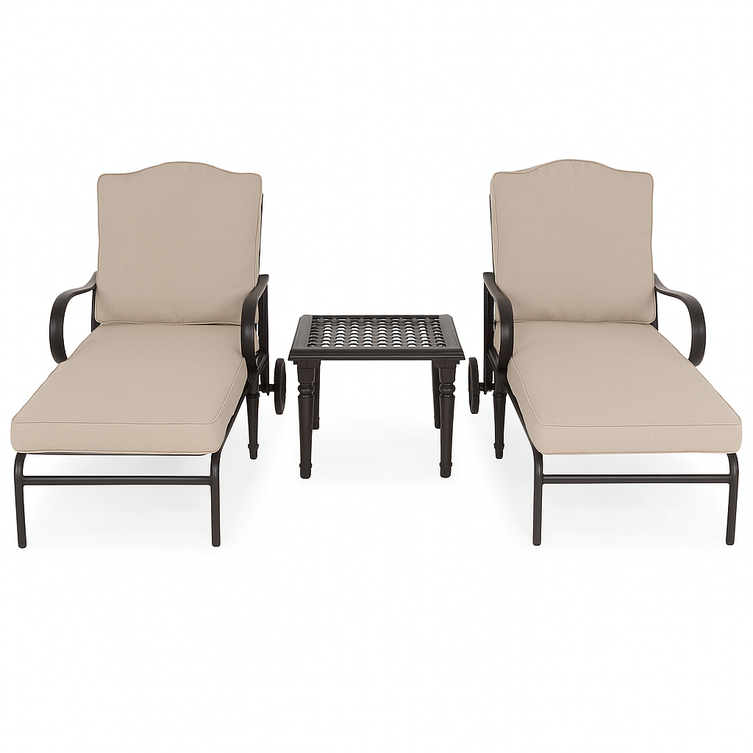 Set mobilier terasă/gradină, 2 șezlonguri și măsuță Laurel.