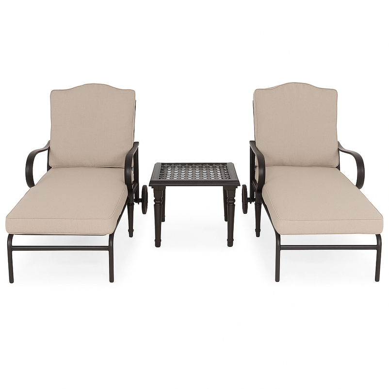 LAUREL Set mobilier terasă/gradină, 2 șezlonguri și măsuță