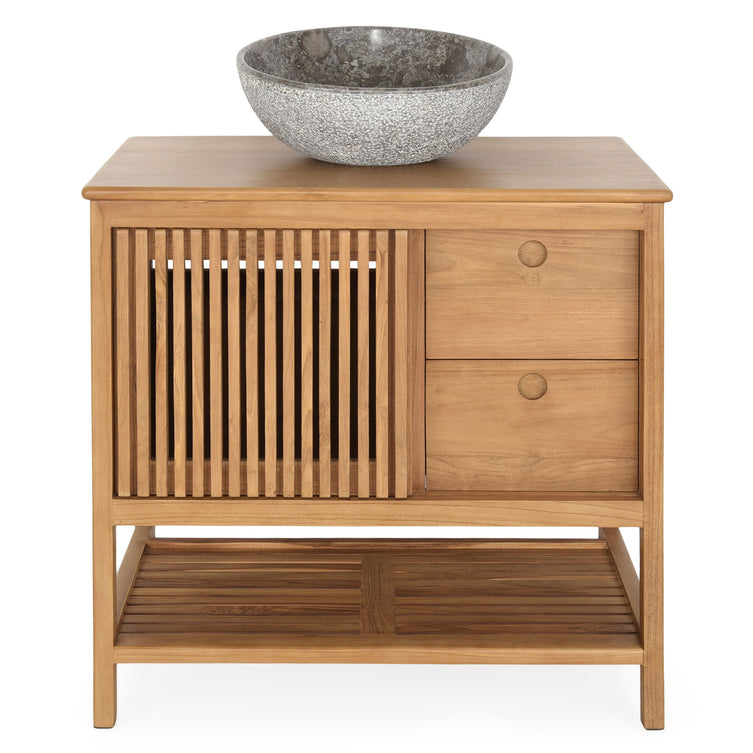 Lemnul de teak este durabil, rezistent la umiditate și adaugă o notă caldă și naturală băii.