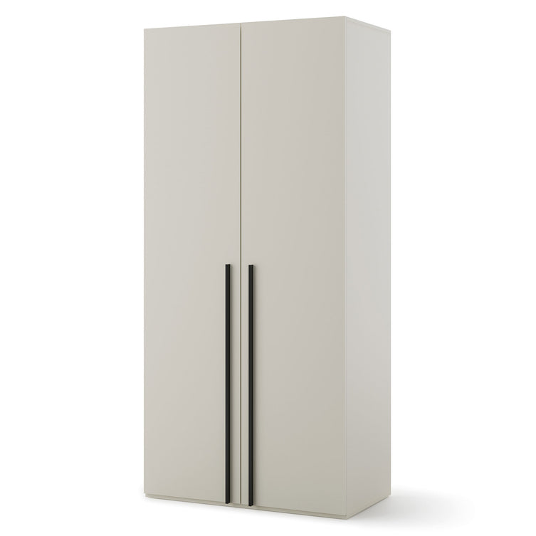 Dulapul cu 2 uși are dimensiuni generoase și este utilat cu 2 polițe lungi și 2 bare de haine, plus o nișă pentru genți sau rucsacuri.