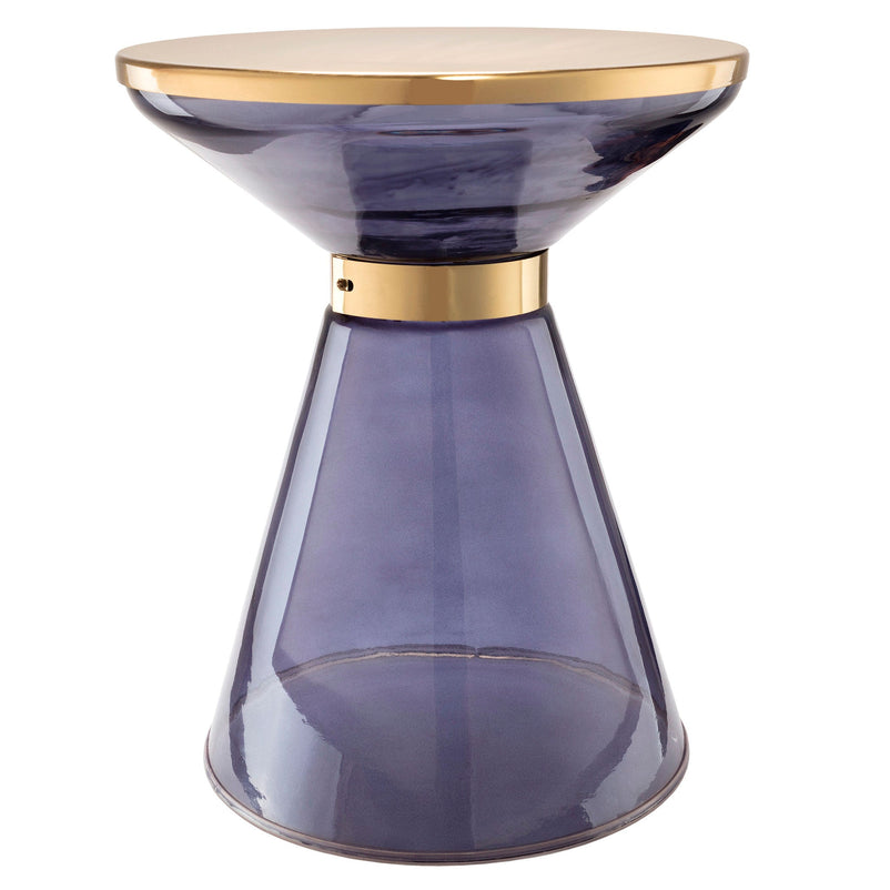 Măsuță Mell. Măsuța Mell reprezintă echilibrul perfect între estetică și funcționalitate. Forma sa de clepsidră, topul auriu și structura din sticlă albastră conferă acestei măsuțe un plus de stil și eleganță în decorul din livingul vostru. Este potrivită pentru a așeza decorațiuni, vaze cu flori sau alte lucruri în funcție de preferințe.
