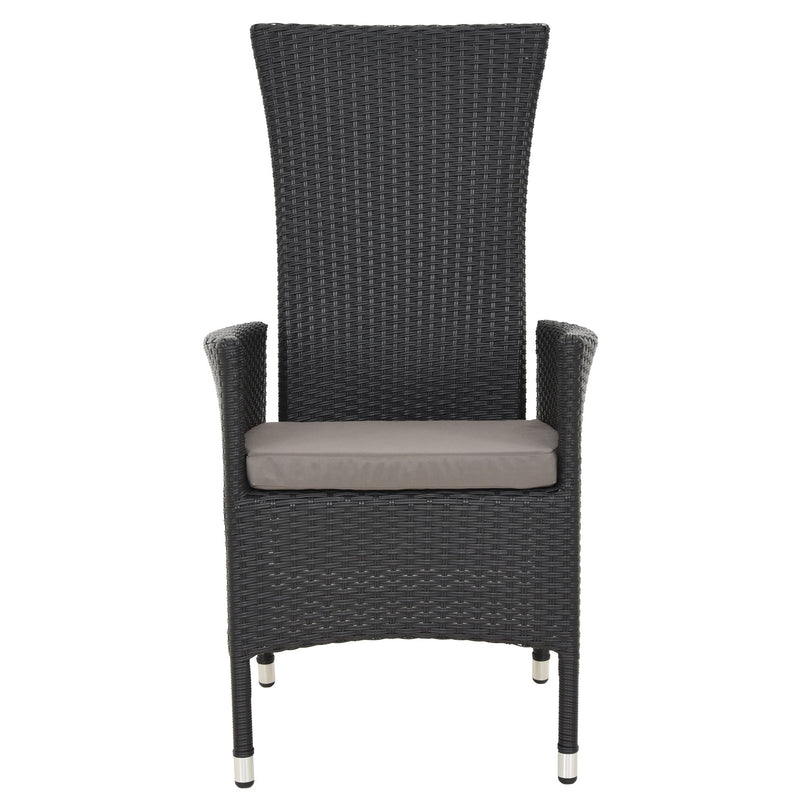 Scaun Encore. Noul decor al terasei sau grădinii voastre trebuie să fie prevăzut cu un scaun din gama Encore, pentru a avea șederi liniștite alături de familia voastră acasă. Structura este din aluminiu vopsit în câmp electrostatic și împletit cu fibre sintetice tratate UV, ce imită ratanul. Spătarul este reglabil și include sistemul rabatabil cu pompă, șezutul incluzând o pernă din poliester impermeabilă. Creați mediul perfect pentru a vă simți bine acasă, iar întâlnirile în familie sau cu prietenii vor fi de neuitat.