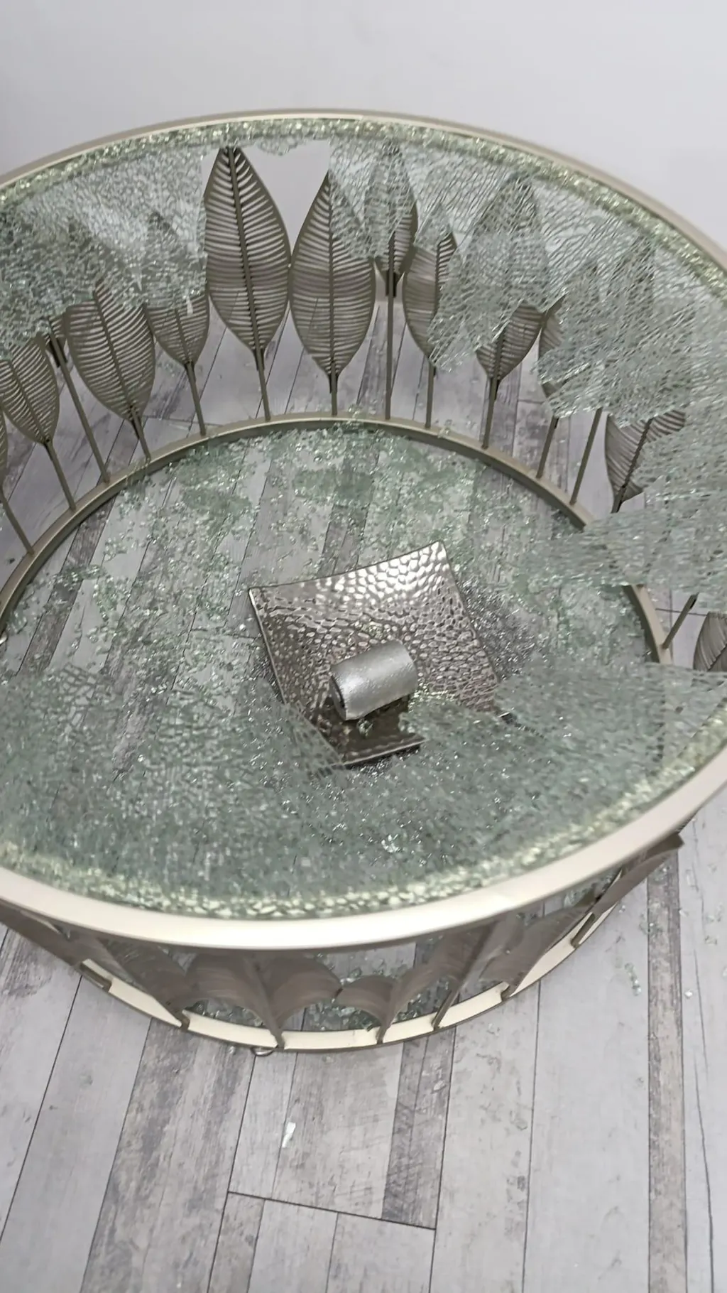 Măsuță cafea Foglia. Aranjamentul care înfățișează elemente naturale de-a lungul măsuței de cafea Foglia vă schimbă ambianța din spațiul vostru de relaxare. Materialul din care este realizată combină sticla și metalul, rezultând un produs elegant și executat cu mult bun gust. Aceasta poate fi amplasată în living, lângă canapea, acolo unde puteți savura o cafea bună alături de prieteni.