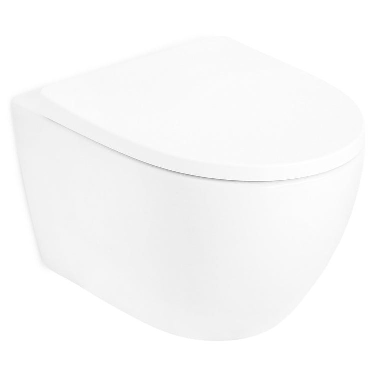Vas toaletă suspendat, ceramică Tornado. Vas toaletă suspendat TORNADO cu tehnologie rimless. Include capac UF (duroplast) cu soft-close și balamale metalice. UF este rigid și rezistent la zgârieturi/decolorare, iar designul rimless elimină „canalul” interior pentru curățare mai ușoară și igienă sporită.