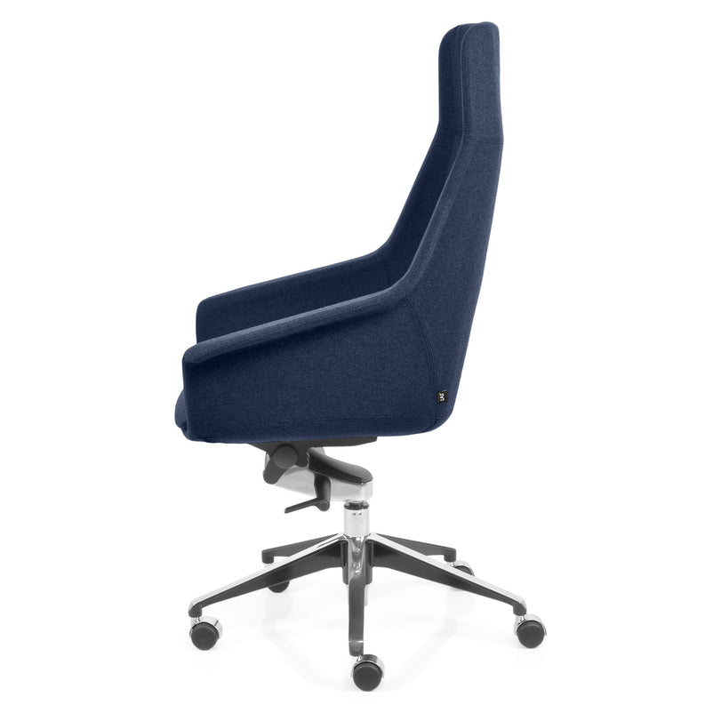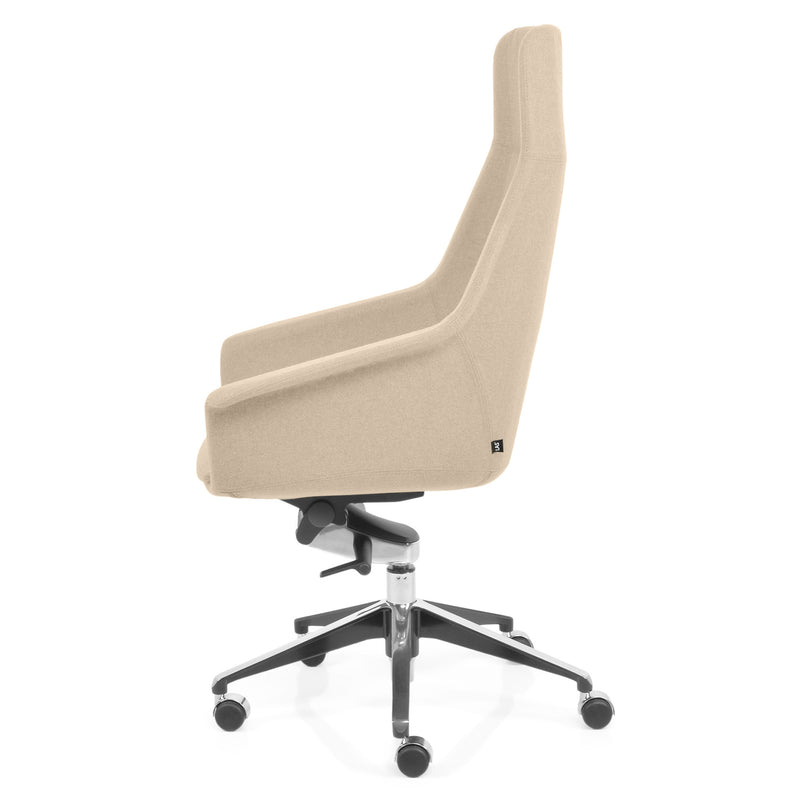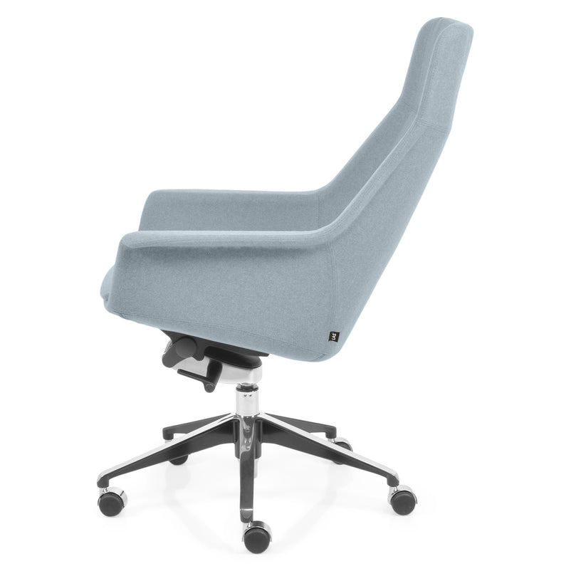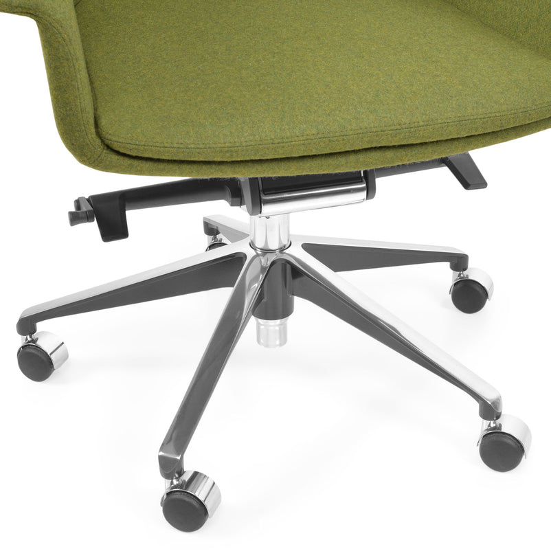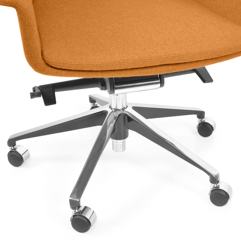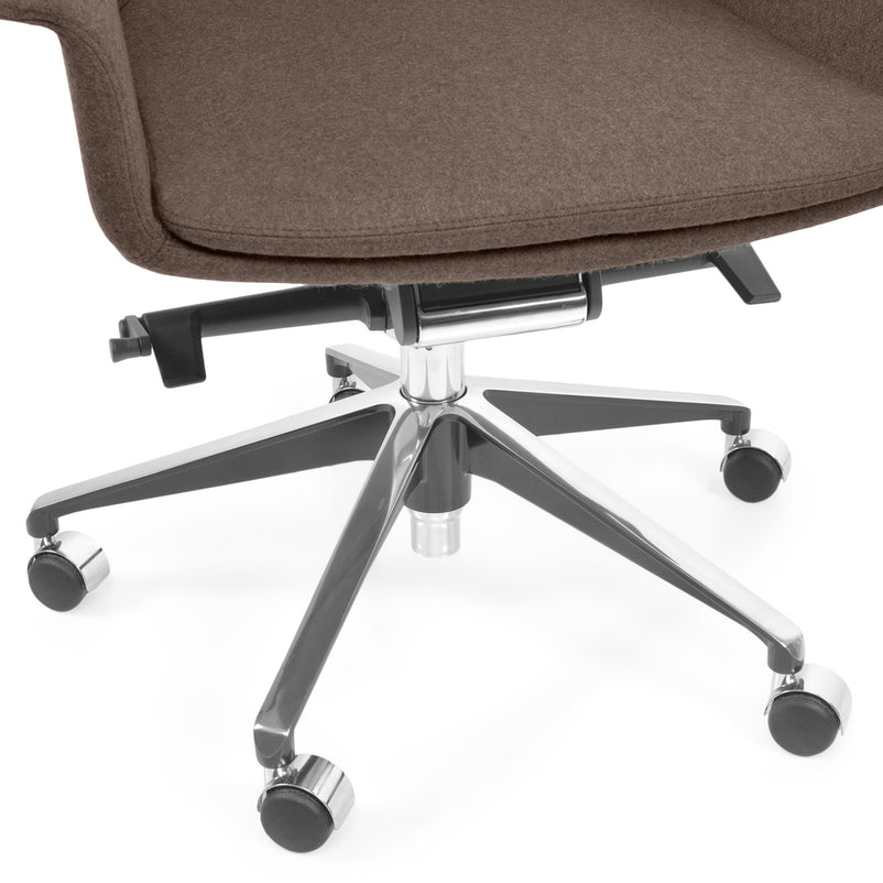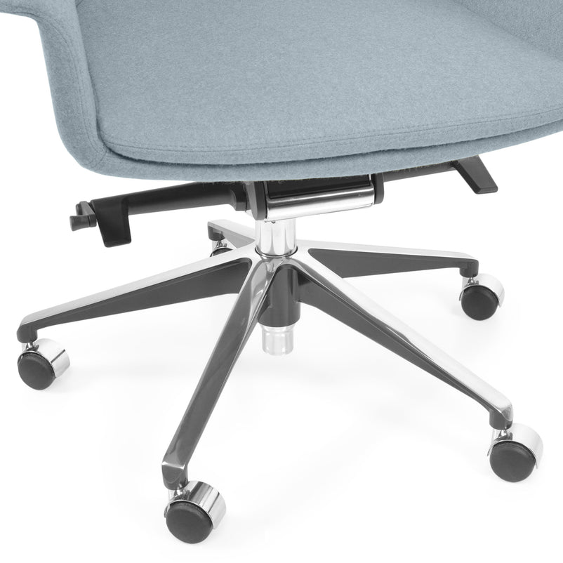 Scaun birou Jera Chair. Petreceți timpul la birou având cel mai confortabil scaun directorial din gama Jera Chair. Baza este metalică mobilă, realizată din aluminiu, cu 5 raze, finisajul crom fiind în partea superioară și negru în partea inferioară. Scaunul este prevăzut cu 5 rotile din nylon pentru toate tipurile de suprafețe. Monococa șezutului și spătarului este realizată din metal acoperit cu spumă poliuretanică turnată la rece, din lemn stratificat, nedeformabilă și ignifugă. Tapițeria șezutului și spătarului este confecționată din amestec de lână. Scaunul posedă diverse mecanisme precum: oscilant avansat cu blocare în 4 poziții, ajustare pe înălțime scaun cu pompă de gaz, ajustarea tensiunii mecanismului în funcție de masa utilizatorului, un mecanism antișoc la deblocarea mecanismului și rotație șezut-spătar 360 grade.