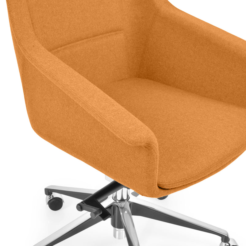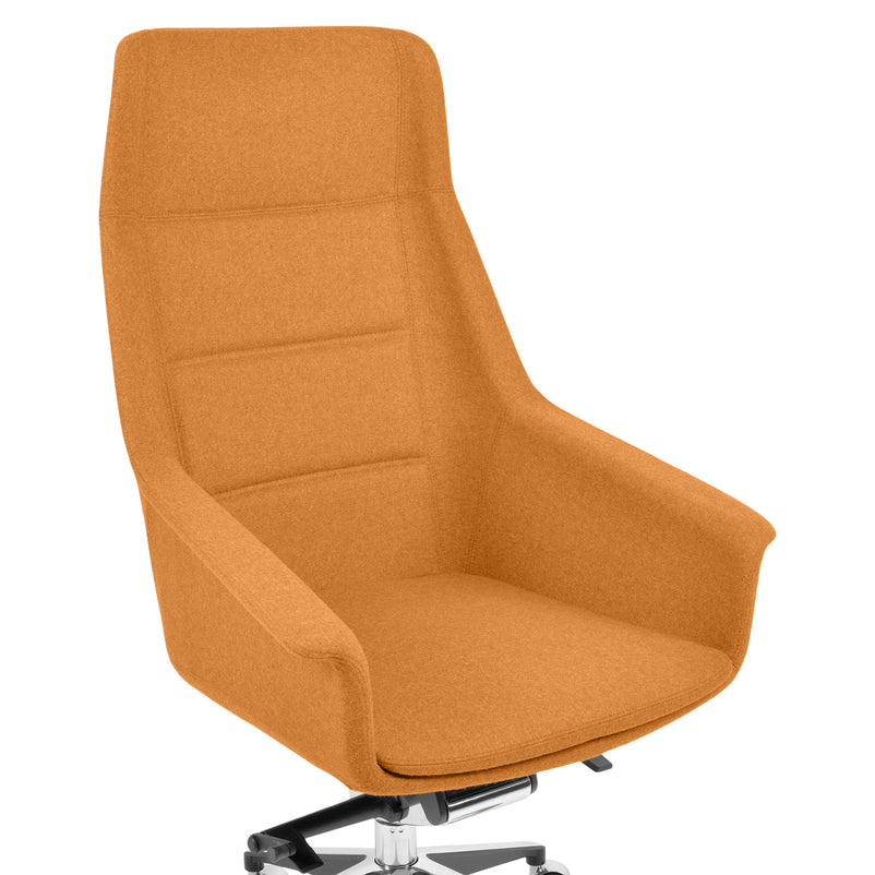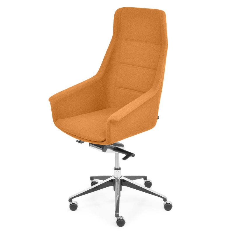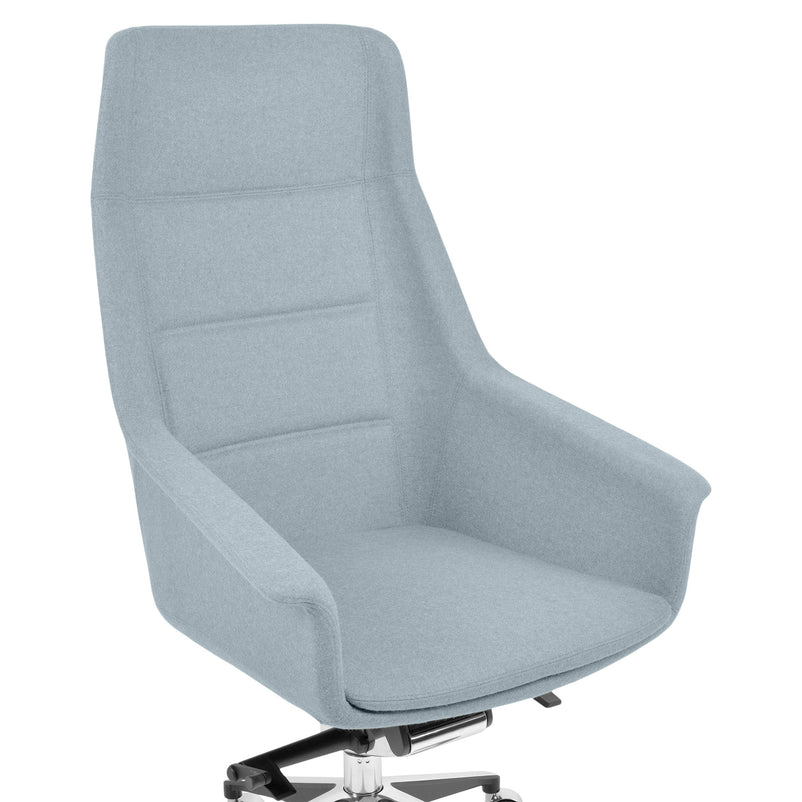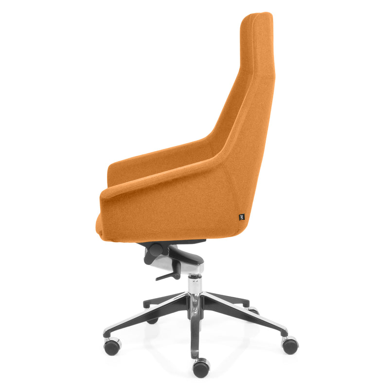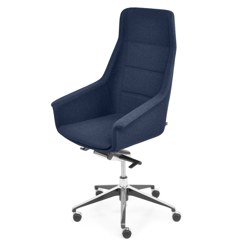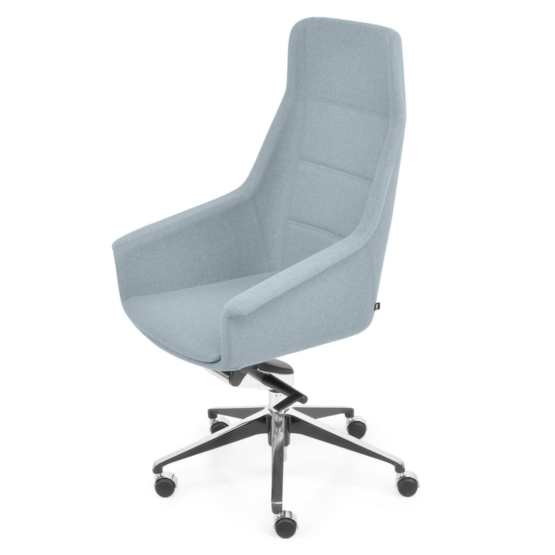 Scaun birou Jera Chair. Petreceți timpul la birou având cel mai confortabil scaun directorial din gama Jera Chair. Baza este metalică mobilă, realizată din aluminiu, cu 5 raze, finisajul crom fiind în partea superioară și negru în partea inferioară. Scaunul este prevăzut cu 5 rotile din nylon pentru toate tipurile de suprafețe. Monococa șezutului și spătarului este realizată din metal acoperit cu spumă poliuretanică turnată la rece, din lemn stratificat, nedeformabilă și ignifugă. Tapițeria șezutului și spătarului este confecționată din amestec de lână. Scaunul posedă diverse mecanisme precum: oscilant avansat cu blocare în 4 poziții, ajustare pe înălțime scaun cu pompă de gaz, ajustarea tensiunii mecanismului în funcție de masa utilizatorului, un mecanism antișoc la deblocarea mecanismului și rotație șezut-spătar 360 grade.