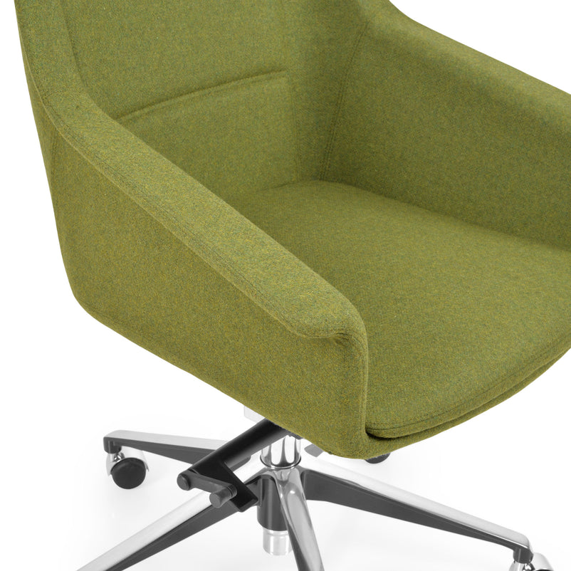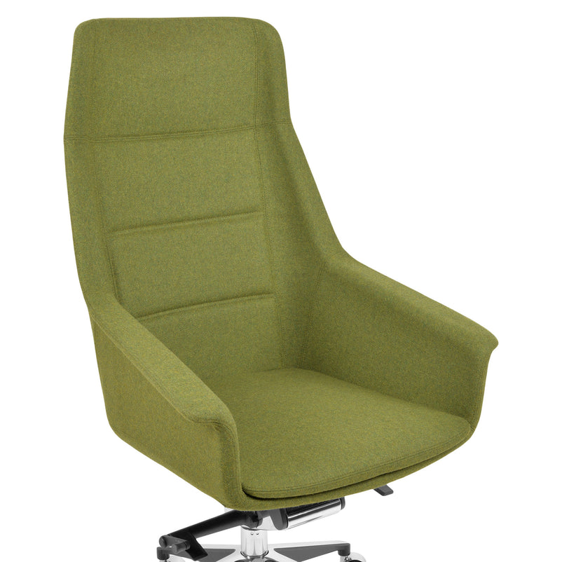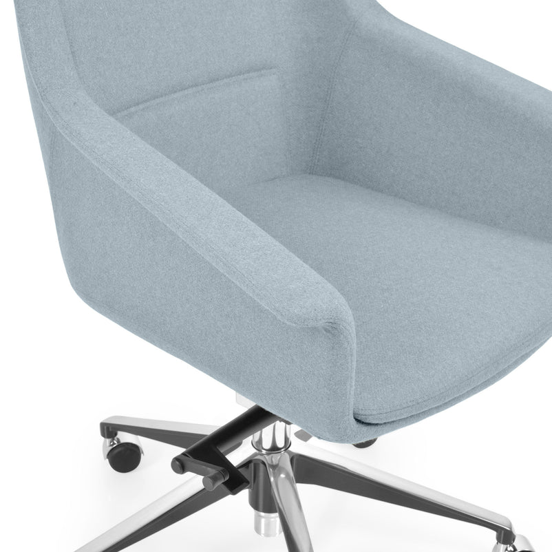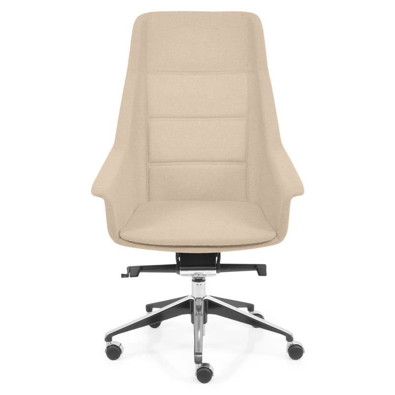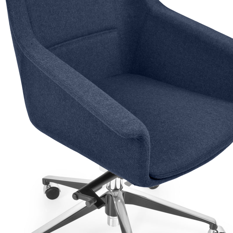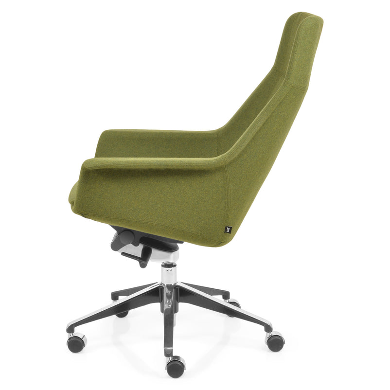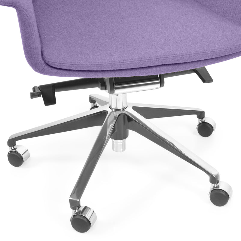 Scaun birou Jera Chair. Petreceți timpul la birou având cel mai confortabil scaun directorial din gama Jera Chair. Baza este metalică mobilă, realizată din aluminiu, cu 5 raze, finisajul crom fiind în partea superioară și negru în partea inferioară. Scaunul este prevăzut cu 5 rotile din nylon pentru toate tipurile de suprafețe. Monococa șezutului și spătarului este realizată din metal acoperit cu spumă poliuretanică turnată la rece, din lemn stratificat, nedeformabilă și ignifugă. Tapițeria șezutului și spătarului este confecționată din amestec de lână. Scaunul posedă diverse mecanisme precum: oscilant avansat cu blocare în 4 poziții, ajustare pe înălțime scaun cu pompă de gaz, ajustarea tensiunii mecanismului în funcție de masa utilizatorului, un mecanism antișoc la deblocarea mecanismului și rotație șezut-spătar 360 grade.