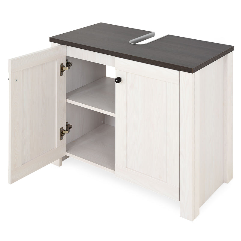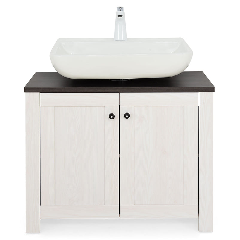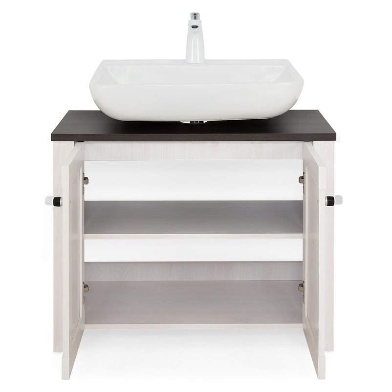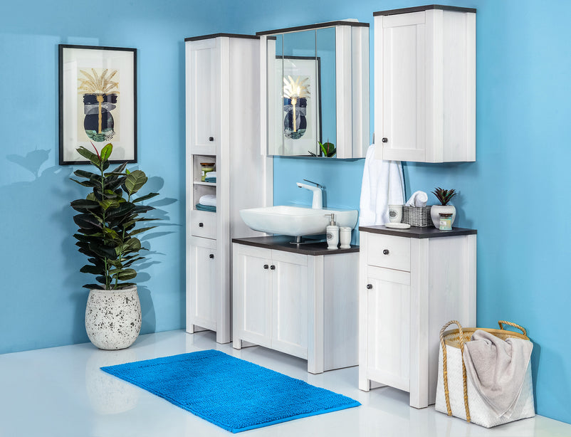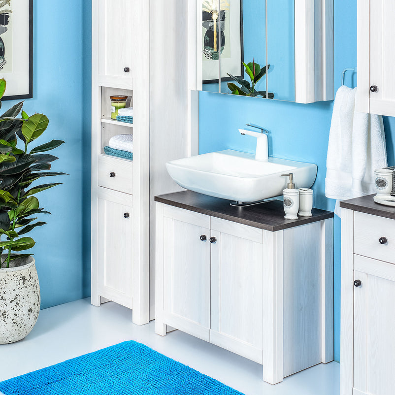 Mască lavoar Antwerpen. Cu un design simplu și culori versatile, masca Antwerpen se va potrivi de minune în baia voastră. Această este realizată din plăci aglomerate din lemn și mdf și are o cromatică plăcută, neîncărcând spațiul la nivel vizual. Masca Antwerpen vă pune la dispoziție un loc în plus pentru depozitare, oferindu-vă posibilitatea de a avea în permanență o baie organizată și practic amenajată.