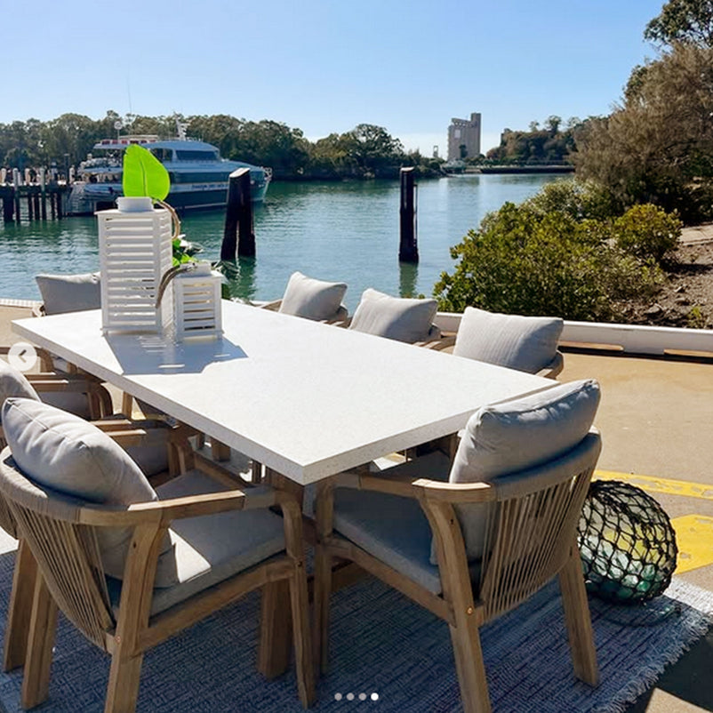 Set mobilier terasă/grădină, 8 scaune și masă Ashen. Ashen este o modalitate elegantă și stilată de a te bucura de aer liber. Acesta include lemn de acacia periat uimitor, cu o combinație de frânghie și lemn, care adaugă textură și dimensiune spațiului tău exterior. Mesele sunt construite din lemn de Acacia 100%, având o construcție solidă cu mortise și tenon, iar blatul din terazzo atrage atenția, completat de hardware din oțel inoxidabil, care garantează atât durabilitatea, cât și farmecul estetic al întregii piese.