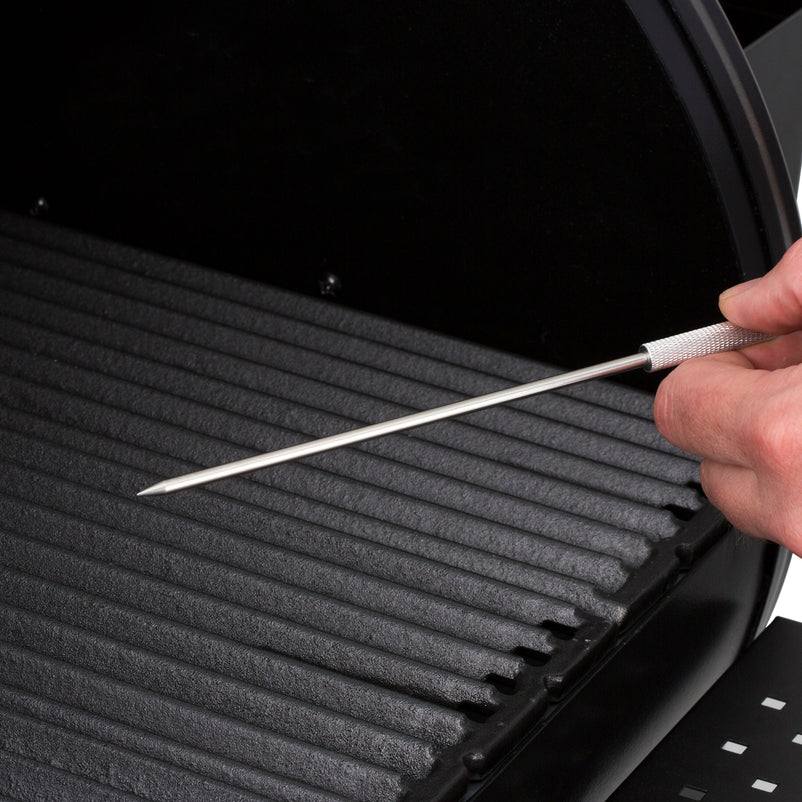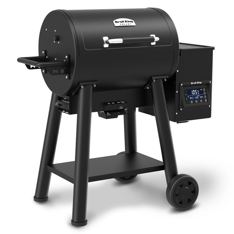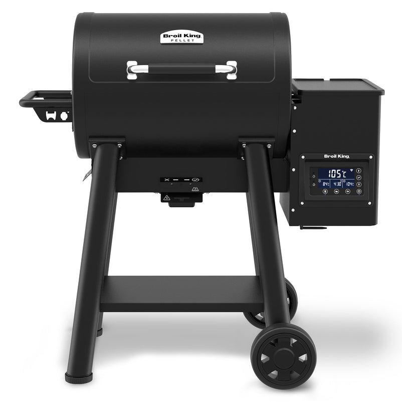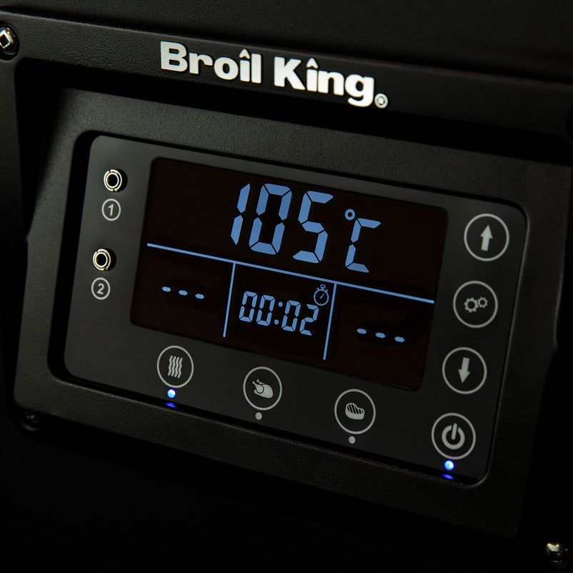 Grătar peleți cu afumătoare Broil King. Grătarul din gama Broil King vă asigură o adevărată plăcere în a prepara cele mai gustoase și fragede produse din carne împreună cu familia. Asemeni unei mașinuțe pe roți, acesta poate fi amplasat oriunde pe terasa sau grădina de acasă. Grilele grătarului sunt fabricate din fontă Flav-R, suprafața principală de gătit având 3613 cmp. Pentru carne sunt disponibile 2 termometre digitale, grătarul fiind echipat cu un motor puternic de 2,0 RPM și melc durabil. De asemenea, beneficiază de un agitator și sistem de curățare a cenușii, capacul fiind din oțel inoxidabil cu diametru mare, cu mâner moale la atingere. Având la bază tehnologia, interfață digitală se activează prin WIFI și bluetooth cu reglare îmbunătățită a temperaturii PID (cu acțiune proporțională-integrală-diferențiată). În cadrul grătarului puteți regăsi și un deschizător de sticle integrat. Corpul grătarului este construit din oțel gros de 1,5 mm, iar vopseaua cu care este acoperit rezistă la temperaturi de 537 grade Celsius. Grătarul Broil King cântărește 61 de kg.