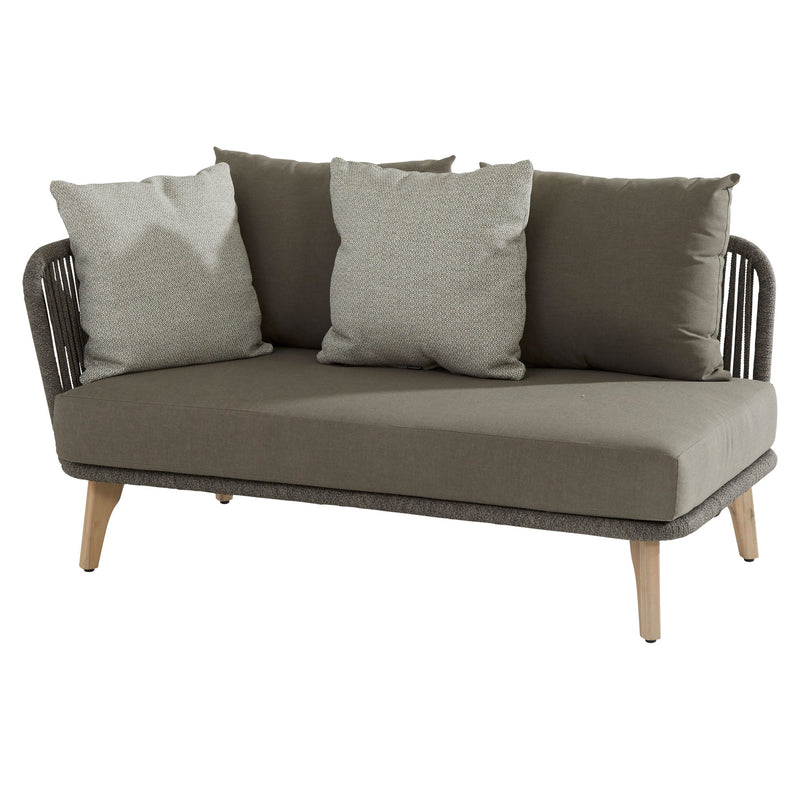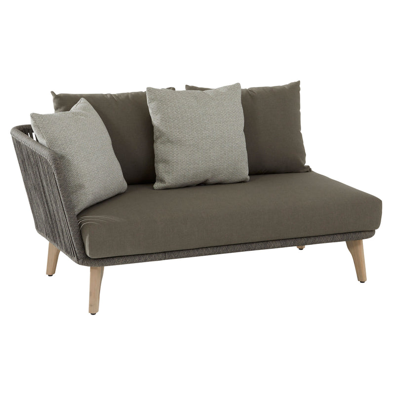 Canapea exterior, 2 locuri Santander. Canapeaua din gama Santander va completa cu mult bun gust amenajarea exterioară. Aceasta este o alegere în care stilul se îmbină cu funcționalitatea. Canapeaua este realizată din structură solidă de lemn de teak împletită cu fibre din poliester cu protecție UV ce imită funia. Include perne îmbrăcate cu țesătură Olefin cu protecție împotriva umezelii și a decolorării. Canapeaua asigură un confort sporit și o postură relaxată, reprezentând piesa perfectă pentru petrecerea timpului în aer liber, alături de prieteni sau familie.