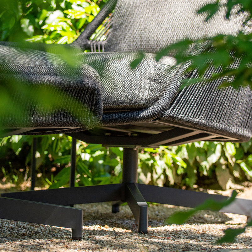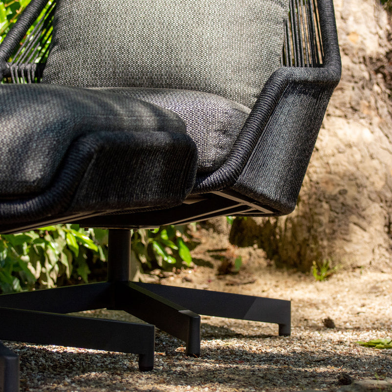 Set mobilier terasă/grădină, fotoliu și taburet Primavera. Setul mobilier Primavera îmbină stilul cu funcționalitatea. Designul neutru îl integrează ușor printre plantele preferate sau copacii înfloriți, iar dimensiunile generoase vă oferă un confort sporit și o postură relaxată. Setul este realizat din structură solidă de aluminiu vopsită în câmp electrostatic și împletită cu fibre din poliester ce imită funia cu protecție UV. Acesta include perne îmbrăcate în țesătură Olefin cu protecție împotriva umezelii și a razelor UV, fiind perfect pentru poziționarea pe terasă sau grădină, indiferent de vreme și anotimp. Cu ajutorul setului mobilier Primavera aveți tot ce e necesar pentru a petrece timp în natură, în răcoarea dimineții.