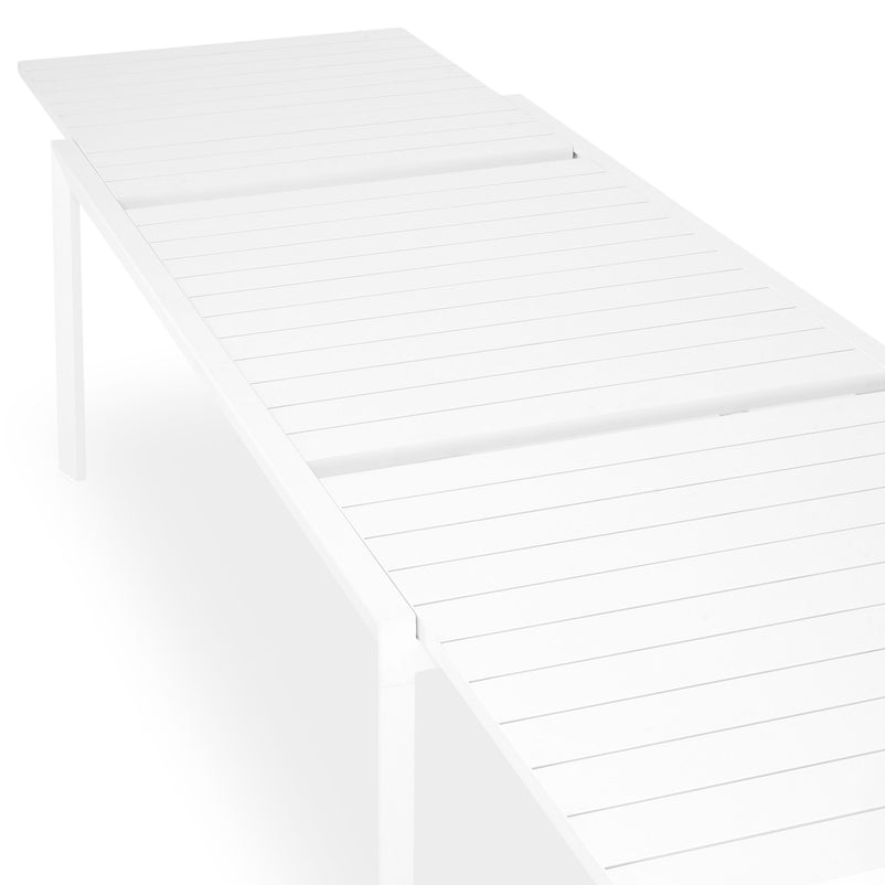 Masă extensibilă exterior Eclipse. Masa din gama Eclipse este ideală pentru zilele când aveți oaspeți numeroși în vizită, oferind suficient spațiu pentru a-i găzdui pe toți, datorită posibilității de extindere. Masa este realizată din aluminiu, fiind rezistentă și durabilă în cadrul amenajării. Are o cromatică versatilă, putând fi asortată în decoruri dintre cele mai diverse.