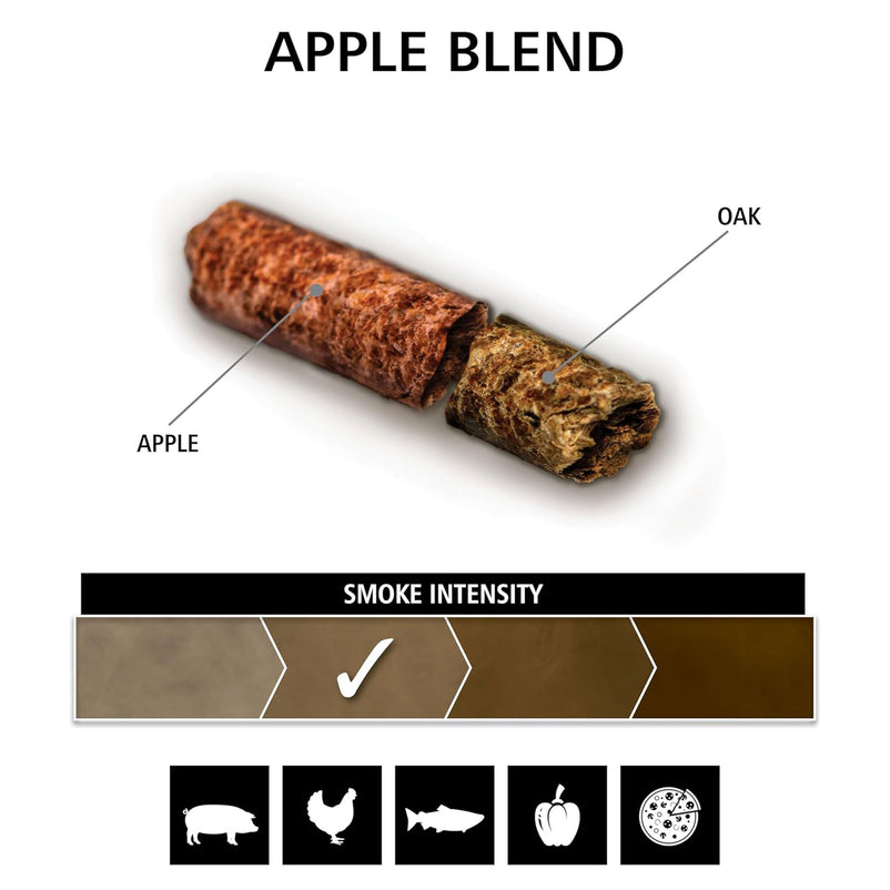Sac peleți amestec de granule de stejar și măr 1.5kg Broil King. Adaugă un plus de aromă preparatelor tale folosind acești peleti naturali în grătarele pe peleti sau în cutia pentru afumare, în locul clasicelor chipsuri – fără a fi nevoie de înmuiere. Amestecul de măr (apple) și stejar (oak) oferă un gust delicat, cu note dulci și fum ușor, ideal pentru carne albă sau legume. 100% natural – fără adaosuri, lianți sau umpluturi.