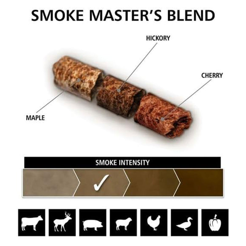 Sac peleți amestec de granule de arțar, nuc și cireș 1.5kg Broil King. Adaugă un plus de aromă grătarului tău cu acești peleti 100% naturali, fără adaosuri, lianți sau umpluturi. Pot fi folosiți direct în grătarele pe peleti sau în cutia pentru afumare, fără a fi nevoie de înmuiere. Amestecul de maple, hickory și cherry oferă un echilibru perfect între dulceața subtilă și fumul intens, complex, specific lemnului de hickory.