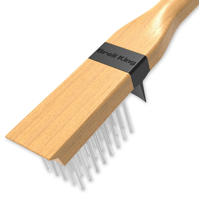 Perie pentru grătar Broil King. Completați setul de ustensile pentru grătar cu un produs practic și necesar. Confecționată din inox și cu un mâner din lemn pentru o mai mare siguranță și susținere, peria este de mare folos atunci când vreți să curățați grătarul cu eficiență.
