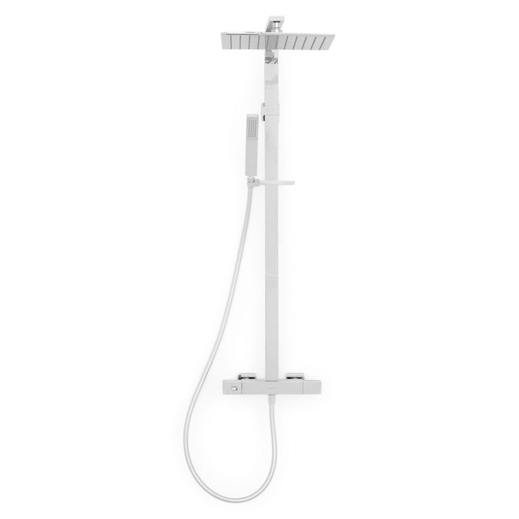Baterie duș Medellin. Într-o baie modernă, setul de duș Medellin aduce o notă de rafinament. Coloana din alamă strălucea, iar capul de duș pătrat oferea o senzație de ploaie, transformând fiecare duș într-un moment de relaxare. Dușul de mână era perfect pentru momentele când aveai nevoie de confort și versatilitate. Furtunul flexibil adăuga ușurință în utilizare, iar suportul din alamă asigura stabilitate. Setul de duș nu era doar un accesoriu; era o parte esențială din rutina zilnică, aducând un sentiment de confort și stil în fiecare zi./p>