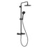 Set baterie duș Vis. Pară duș mobilă alimentată cu furtun duș 150 cm și suport reglabil, pară duș centrală, montată pe coloana de duș principală. Coloana de duș a panoului este compusă din două bucăți și poate fi extinsă de la 93/132cm. Coloana de duș se fixează pe perete într-un punct, la nivelul îmbinării celor două segmente. Coloana de duș este special concepută pentru a fi montată în cabina de duș, înălțimea în punctul maxim este de 132cm. Un robinet termostatic este echipat cu un element termostatic. Acest lucru asigură că apa atinge cu ușurință temperatura dorită și menține întotdeauna temperatura setată. Așa că salvează apa și energia voastră! Există un limitator de temperatură pe robinet