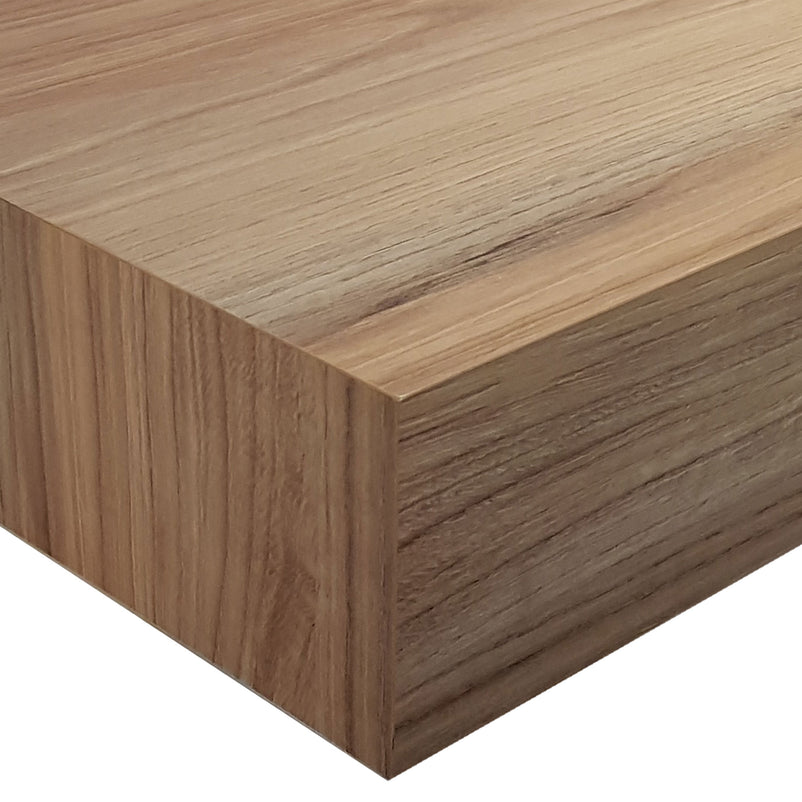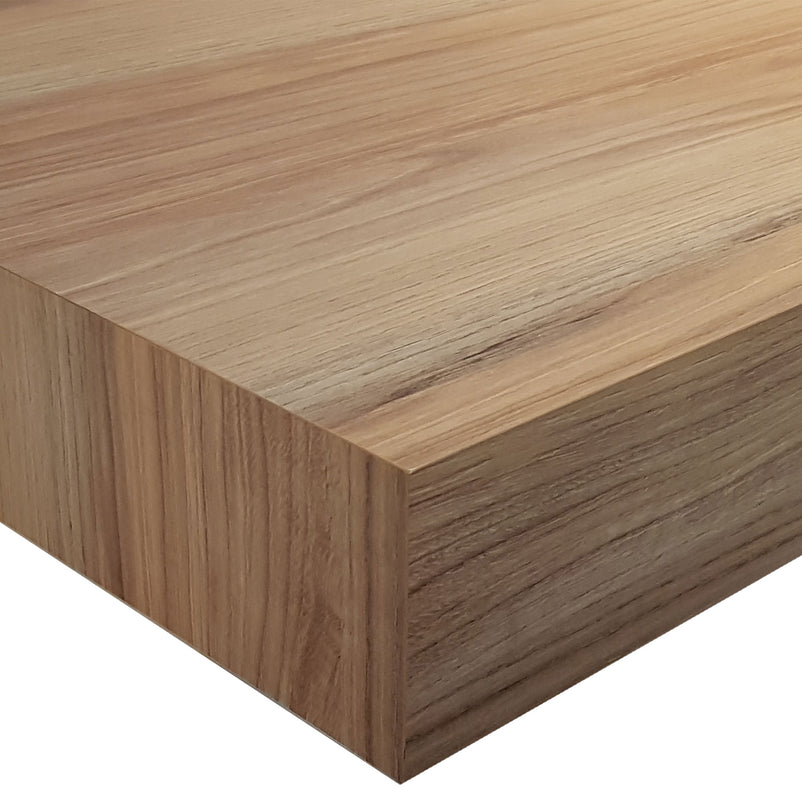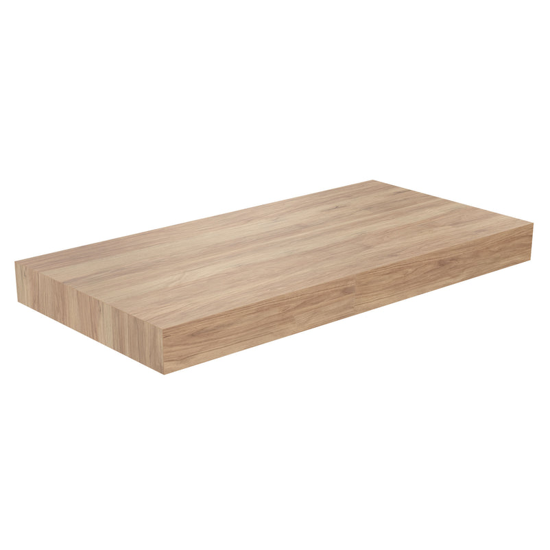 Top lavoar Vidal. Această masă din HPL are o lățime de 106 cm, o adâncime de 52 cm și o înălțime a marginilor de 9 cm. Acest blat în culoarea rustică de tec se potrivește în fiecare baie datorită finisajului său elegant.