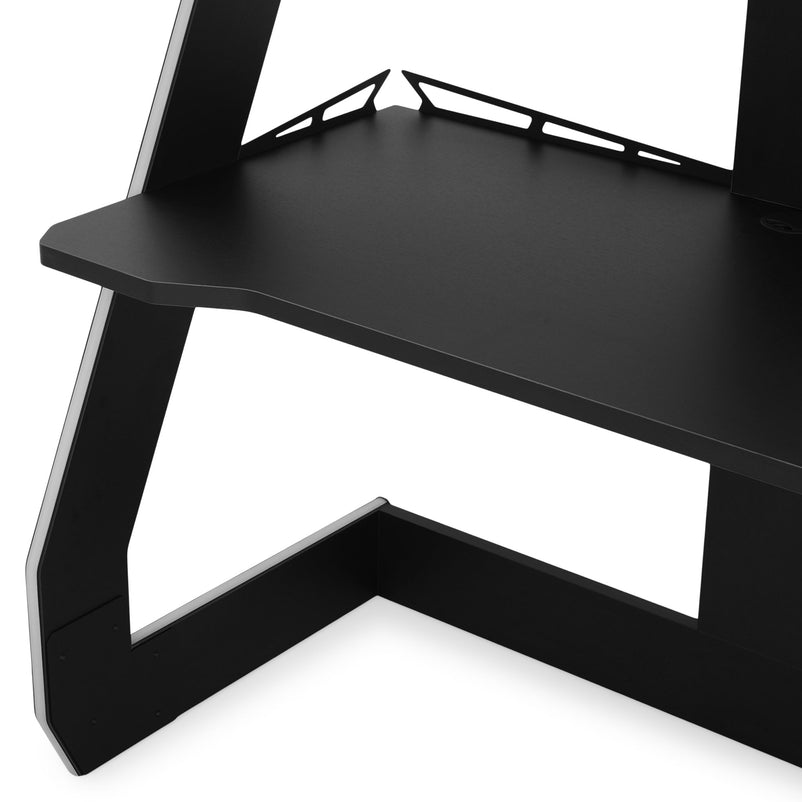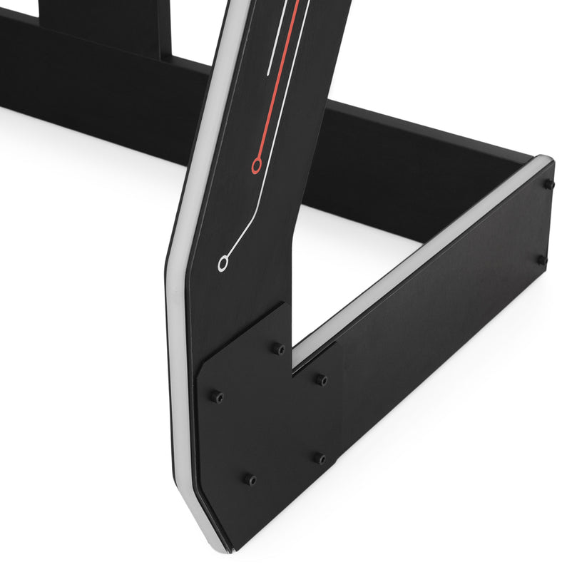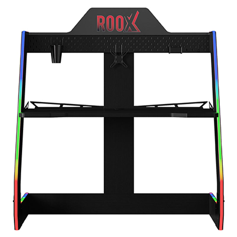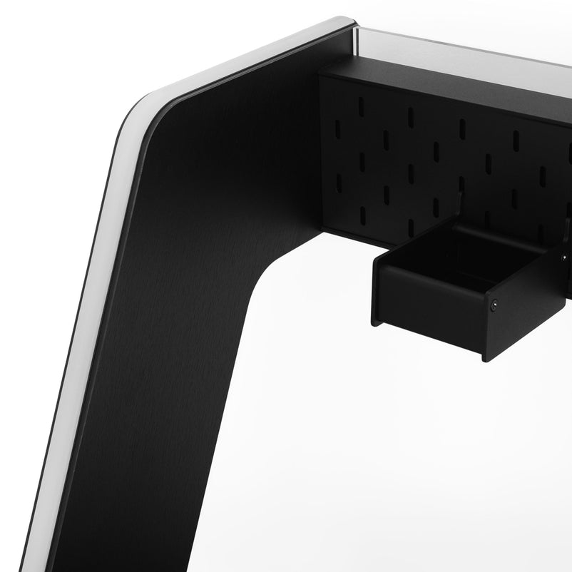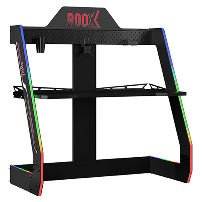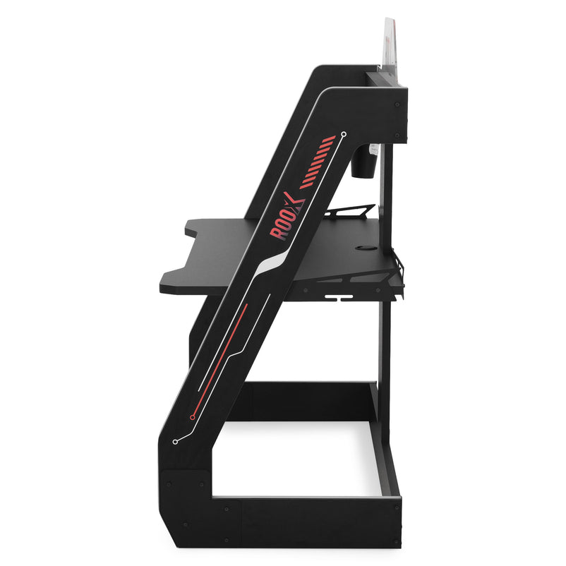 Birou copii, LED-uri și suport monitor Be Cool. Blatul are formă ergonomică iar suprastructura include un panou metalic de care sunt atașate accesorii: suport monitor, suport căști. Pe lateralele biroului se montează led-uri cu lumină RGB reglabilă prin intermediul aplicației IOS sau Android. Prin sunet se activează lumina led-urilor, biroul fiind dotat cu microfon. Un refugiu magic pentru copilul tău, această cameră ce oferă multe module funcționale și culori uimitoare, este destinată băieților dinamici, plini de energie. Be Cool este o cameră care stimulează imaginația și gândirea neconvențională a copiilor, îi motivează atât să învețe cât și să se joace. Mobilierul este realizat din PAL melaminat finisat cu cant rezistent ABS, având o structură stabilă și design imprimat UV. Mânerele din plastic de culoare roșie electrizantă și luminile tip LED cu lumină reglabilă RGB de pe conturul patului și biroului, subliniază personalitatea dinamică a copilului. Cele 5 module disponibile acoperă toate funcțiunile necesare într-o cameră de copil: zona de studiu, reprezentată prin etajeră și biroul cu panou supraînălțat, zona de depozitare și somn reprezentată prin dulapul cu 3 uși, patul 120 și noptiera. Benzile cu LED-uri sunt inserate la tablia patului și pe conturul biroului, fiind incluse în preț. Atractivă și funcțională, camera Be Cool acomodează un copil energetic și cu stima de sine ridicată, performant atât la lecții cât și la jocurile PC.