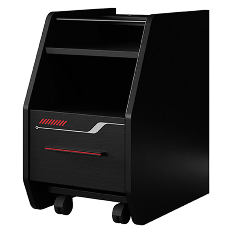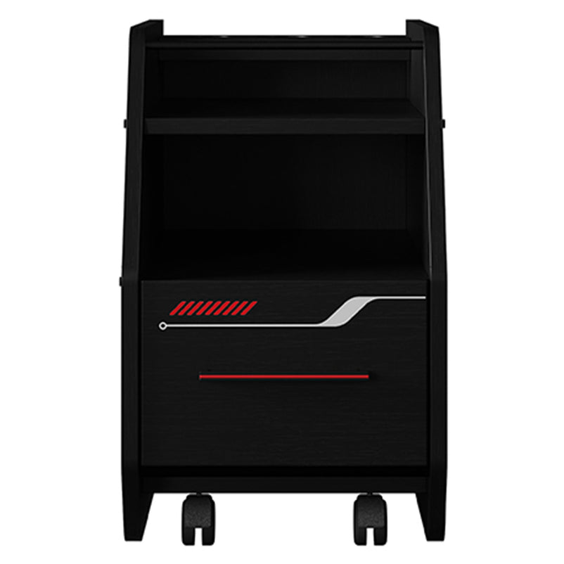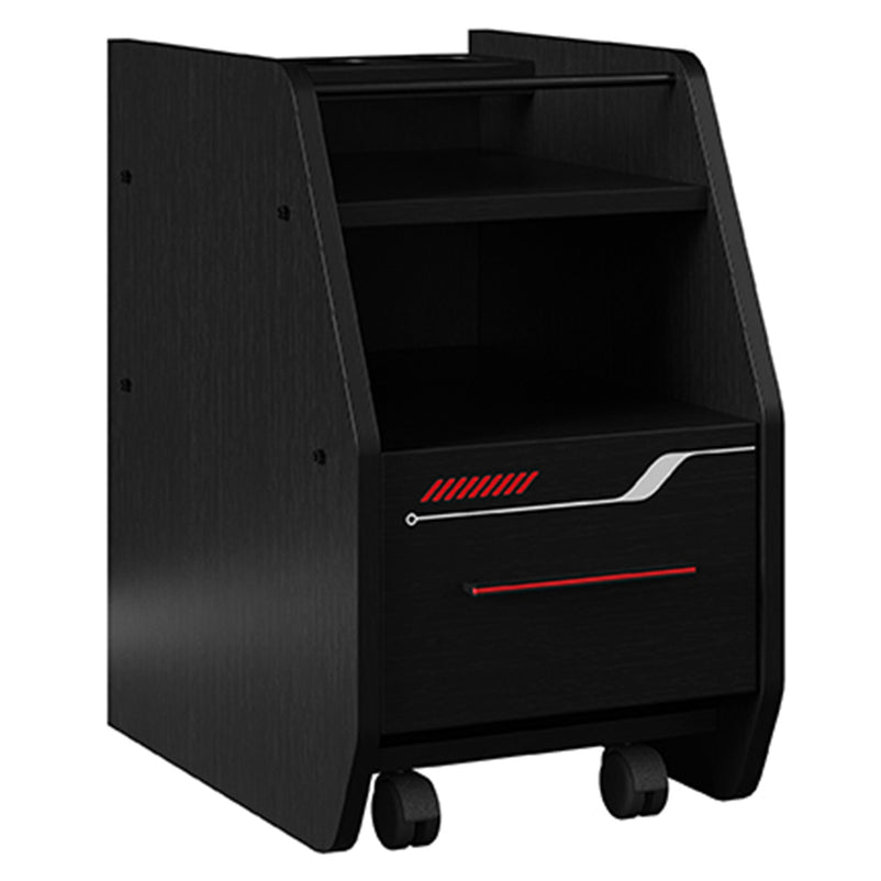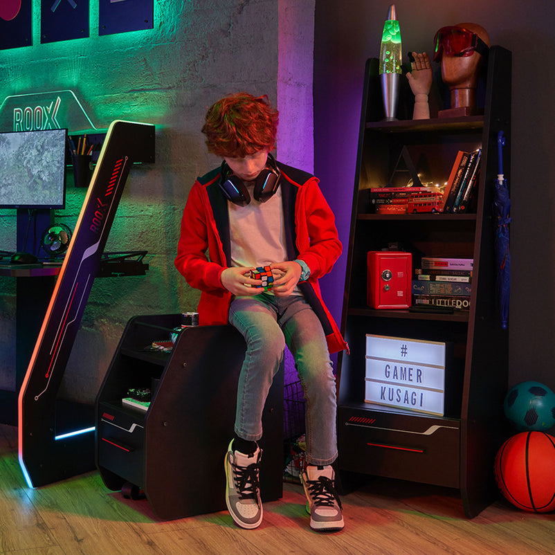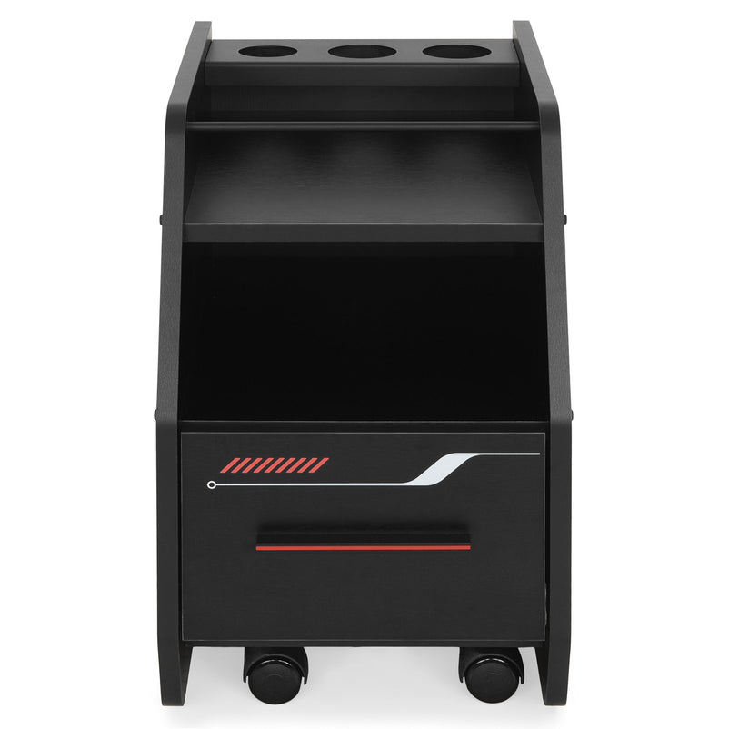 Noptieră copii, 1 sertar Be Cool. Noptiera cu role, 1 sertar. Ușor de mutat lângă pat sau birou, după necesități, noptiera are 1 sertar și 1 nișă spațioasă și este dotată cu separator metalic pentru sticla cu suc. Un refugiu magic pentru copilul tău, această cameră ce oferă multe module funcționale și culori uimitoare, este destinată băieților dinamici, plini de energie. Be Cool este o cameră care stimulează imaginația și gândirea neconvențională a copiilor, îi motivează atât să învețe cât și să se joace. Mobilierul este realizat din PAL melaminat finisat cu cant rezistent ABS, având o structură stabilă și design imprimat UV. Mânerele din plastic de culoare roșie electrizantă și luminile tip LED cu lumină reglabilă RGB de pe conturul patului și biroului, subliniază personalitatea dinamică a copilului. Cele 5 module disponibile acoperă toate funcțiunile necesare într-o cameră de copil: zona de studiu, reprezentată prin etajeră și birou cu panou supraînălțat, zona de depozitare și somn reprezentată prin dulapul cu 3 uși, patul 120 și noptiera. Benzile cu LED-uri sunt inserate la tablia patului și pe conturul biroului, fiind incluse în preț. Atractivă și funcțională, camera Be Cool acomodează un copil energic și cu stima de sine ridicată, performant atât la lecții cât și la jocurile PC.