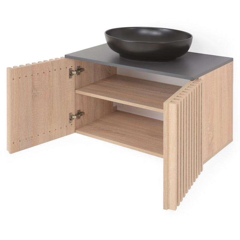 Mască lavoar, 2 uși Arquitect. Dorințele pot deveni realitate dacă v-ați gândit la o reamenajare a băii de acasă. Masca lavoar cu 2 uși din gama Arquitect se potrivește în orice baie care doriți să fie elegantă și să strălucească de frumusețe. Această mască lavoar vine cu un spațiu potrivit pentru a vă depozita lucrurile de igienă personală. Construit din materiale lemnoase de calitate și finisate în stejar, setul are un design frumos care vă va inspira din punct de vedere al esteticii. De asemenea, ușile oferă modul de închidere soft-closing.