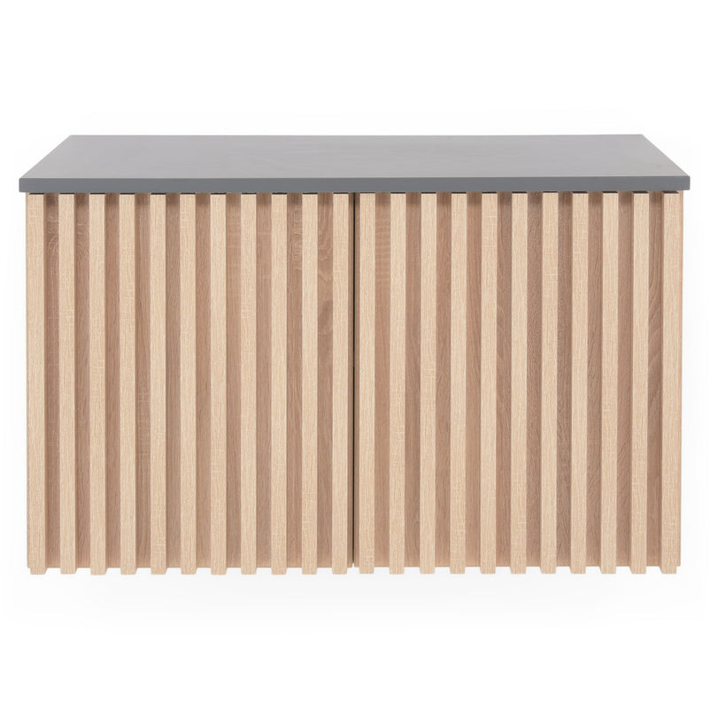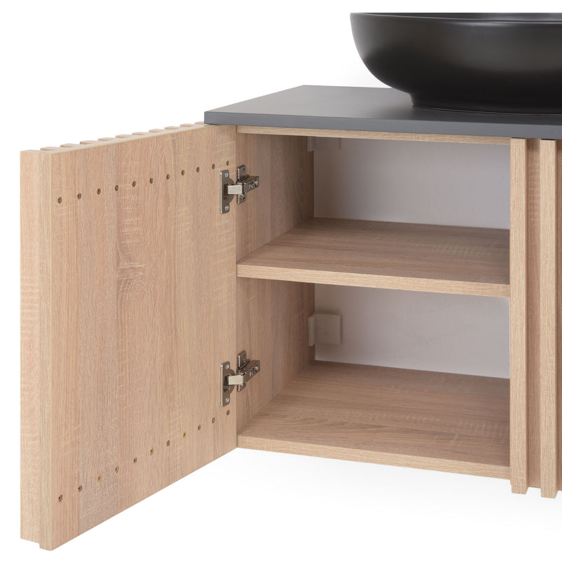 Mască lavoar, 2 uși Arquitect. Dorințele pot deveni realitate dacă v-ați gândit la o reamenajare a băii de acasă. Masca lavoar cu 2 uși din gama Arquitect se potrivește în orice baie care doriți să fie elegantă și să strălucească de frumusețe. Această mască lavoar vine cu un spațiu potrivit pentru a vă depozita lucrurile de igienă personală. Construit din materiale lemnoase de calitate și finisate în stejar, setul are un design frumos care vă va inspira din punct de vedere al esteticii. De asemenea, ușile oferă modul de închidere soft-closing.