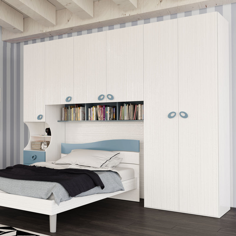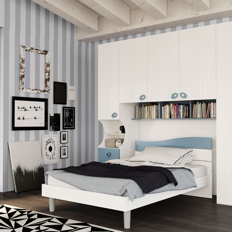 Un refugiu magic pentru copilul tău, această cameră cu pat încadrat de dulapuri, tip pont, este destinată copiilor dinamici, plini de energie, care vor să aibă totul repede, la îndemână. Jimmy este cea mai inteligentă soluție de salvare a spațiului într-o cameră pentru copil.