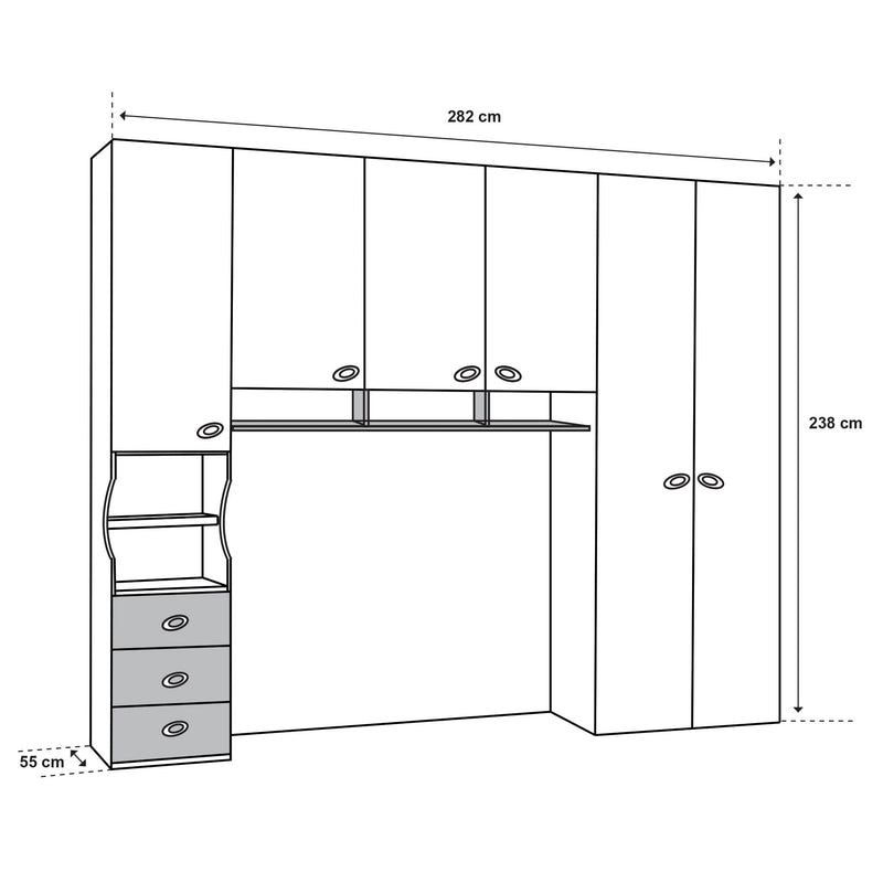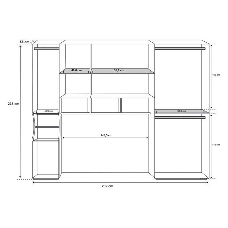 Dimensiuni: L.282 x l.55 x H.238 cm.