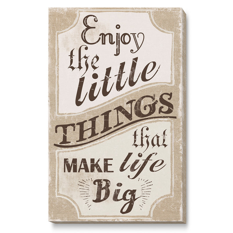 Tablou Enjoy The Little Things. Se spune ca o imagine face cat o mie de cuvinte, insa asta nu inseamna ca acestea din urma si-au pierdut valoarea. Asadar, decorati-va peretii cu acest tablou ce imbina intr-un mod cat se poate de creativ cuvintele si reprezentarile grafice.