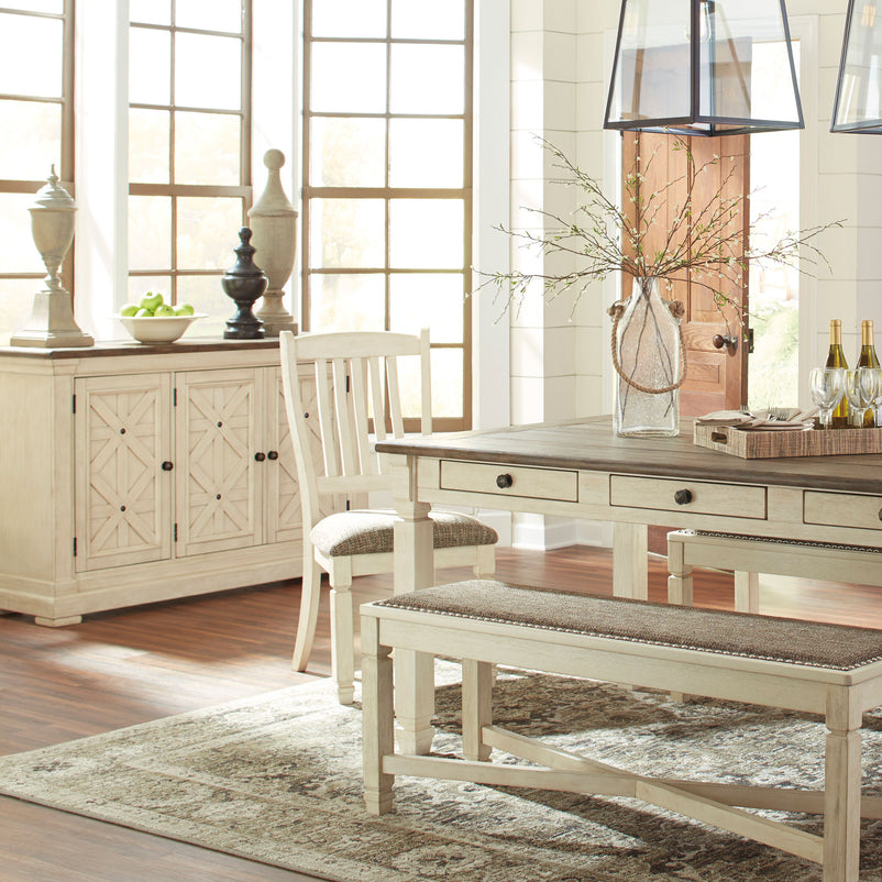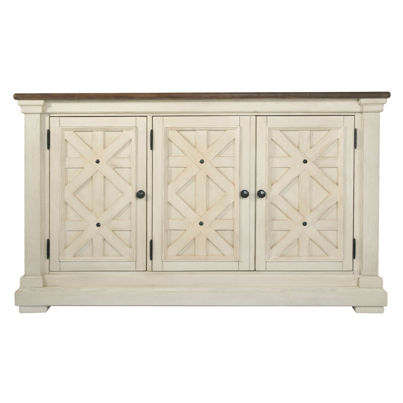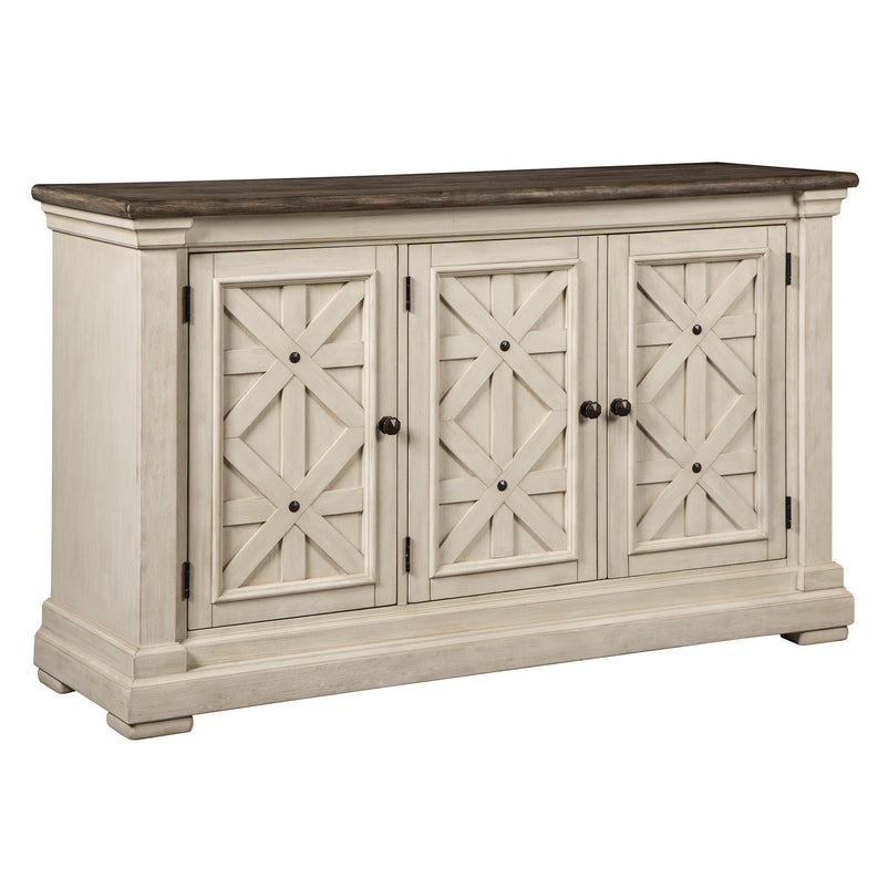 Bufet 3 uși Bolanburg. Bufetul din gama Bolanburg se remarcă prin aspectul simplu și rafinat pe care îl poate aduce în amenajarea din livingul vostru. Bufetul este realizat din furnir și lemn, cu forme armonioase, iar cromatica în nuanțe deschise, va asigura un decor luminos și plăcut. Acesta este deosebit de funcțional și include suficiente spații de depozitare pentru organizarea veselei sau altor obiecte.