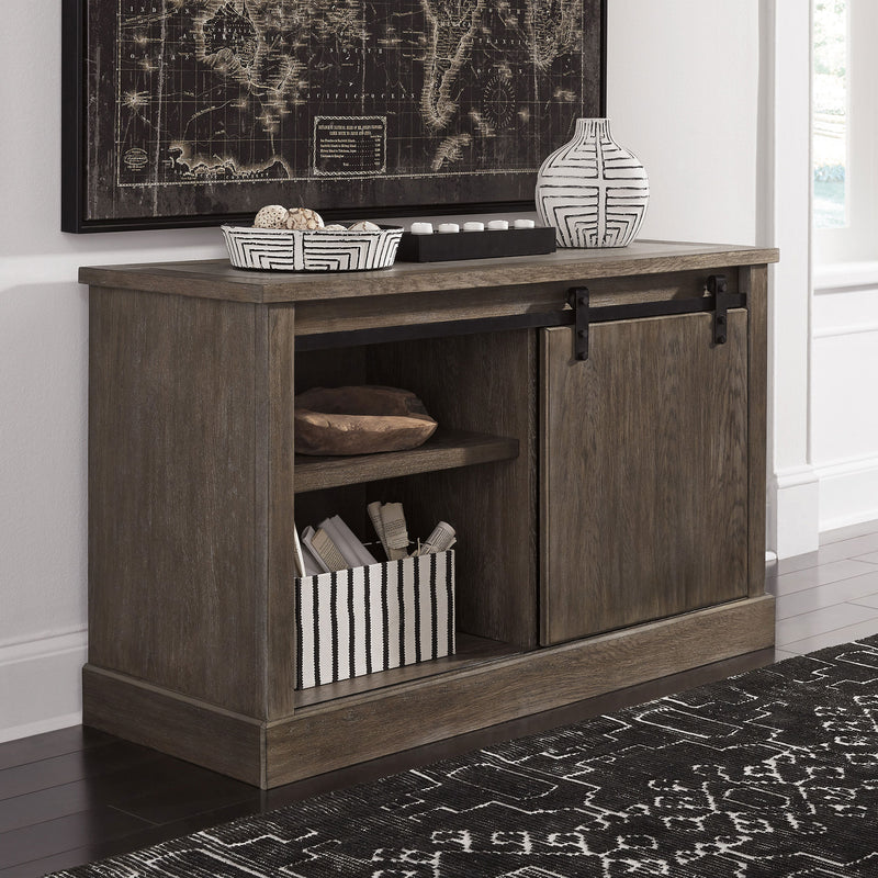 Comodă 1 ușă Luxenford. Amenajați-vă casa în ultimele tendințe în materie de piese de mobilier având la dispoziție gama de produse Luxenford. Comoda cu ușă culisantă Luxenford este o piesă elegantă, cu stil, care se potrivește într-un decor în tonuri sobre. Aceasta este alcătuită din materiale lemnoase de bună calitate, finisajul gri periat cu sârmă oferindu-i un aspect atractiv. Comoda poate fi amenajată cu obiecte decorative care să vă încânte privirea. Perfectă pentru orice decor modern, comoda cu ușă culisantă Luxenford este un element care vă va umple camera de eleganță.