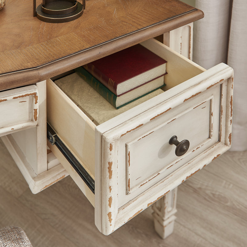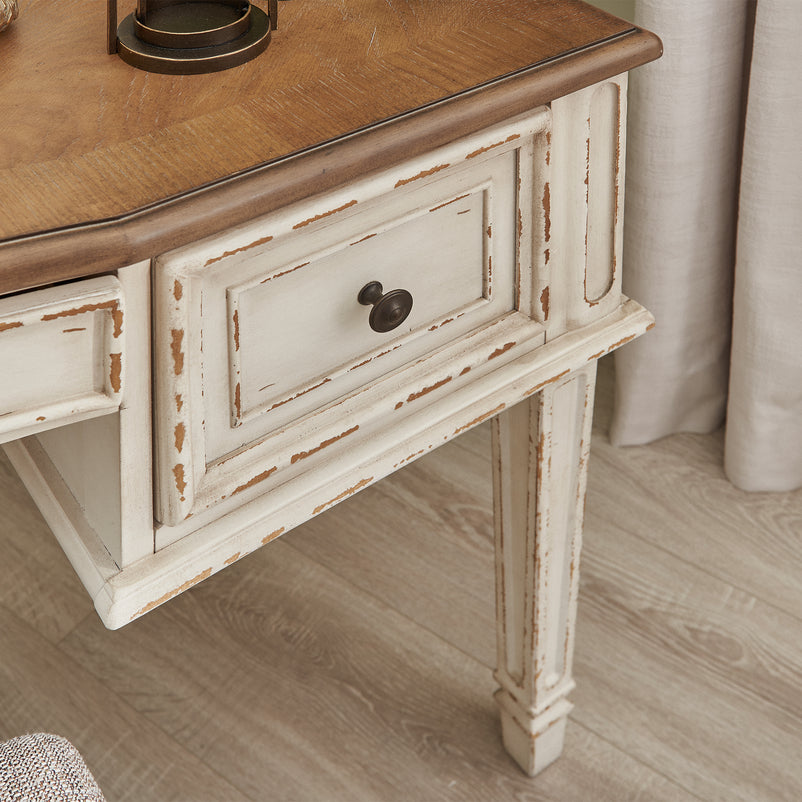 Gama Kinsley. O expresie a stilului antichizat, pentru persoanele care vor să dea un contur deosebit casei lor. Piesele de mobilier ce poartă semnătura gamei sunt atent confecționate, cu detalii care subliniază stilul de trecere, dintre epoca veche și dorința de modernitate. Lemnul alb, cu urme de uzură, dă o notă aparte, impresionând prin fiecare mic detaliu plasat cu inspirație. Elementele maro se împletesc cu furnirul de mesteacăn și detaliile din polirășină, într-o contopire cromatică de impact.