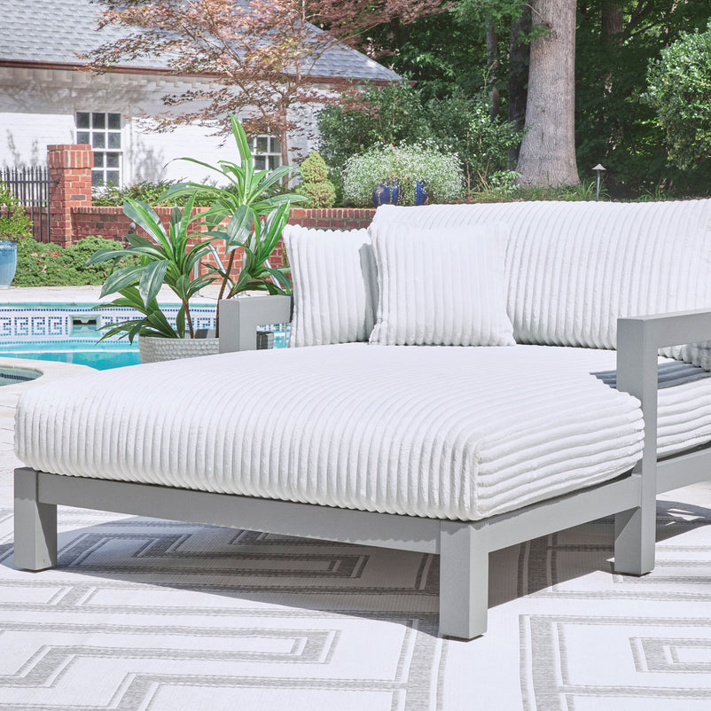 Pat exterior Moonlight. Răsfață-te cu confort și eleganță în aer liber cu șezlongul de exterior Moonlight. Cu un cadru modern din aluminiu și un design texturat, acest șezlong oferă spațiu generos pentru două persoane, ideal pentru momentele de relaxare lângă piscină sau pe verandă. Aspectul său sofisticat și materialul Nuvella®, rezistent la razele UV și ușor de curățat, îl fac perfect pentru orice spațiu exterior.