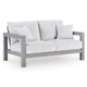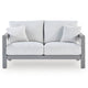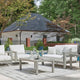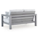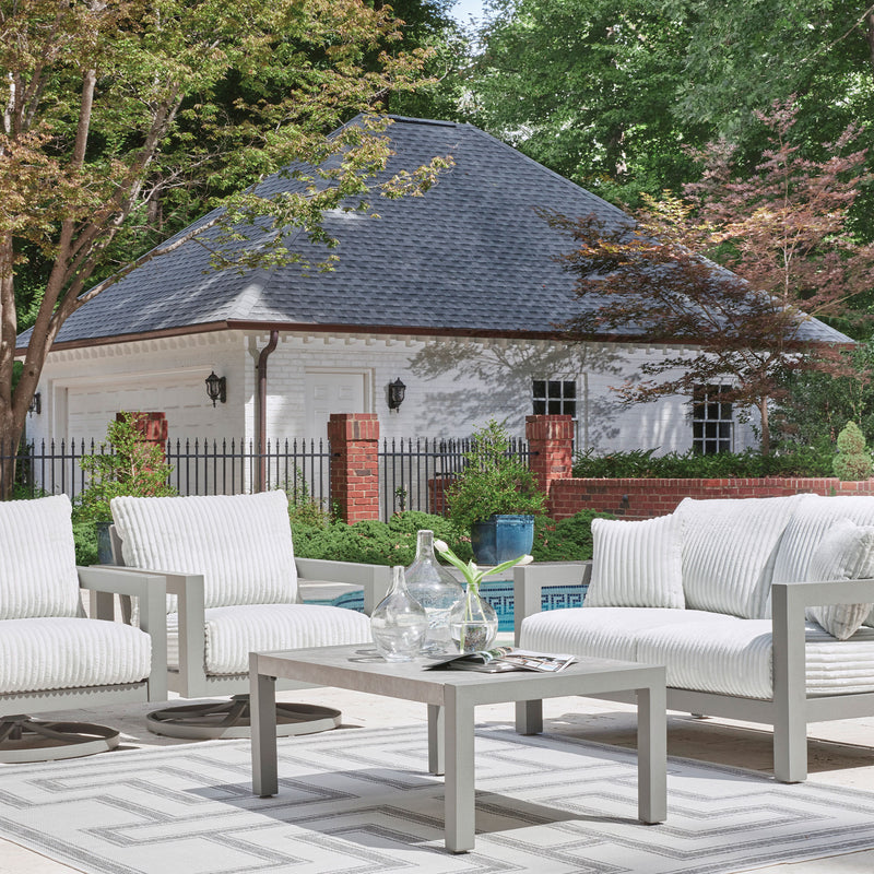 Cadrul din aluminiu este ușor și rezistent la rugină, oferind durabilitate în timp. Spuma utilizată pentru perne este special concepută pentru exterior și este înfășurată într-un poliester moale, plăcut la atingere. Husele detașabile din material Nuvella® sunt rezistente la razele UV și ușor de întreținut, putând fi curățate simplu cu apă și săpun. Pentru pete mai dificile, se recomandă o soluție diluată de clor. Feroneria din oțel inoxidabil asigură stabilitate și rezistență în orice sezon, iar blatul măsuței din piatră sinterizată adaugă un aspect natural și o rezistență superioară.