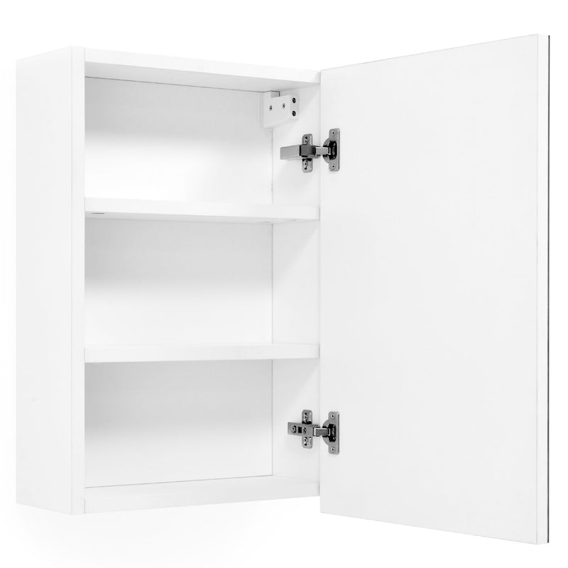 Dulap baie suspendat cu oglindă, 1 ușa Banks. Cu un design simplu și modern, dulapul Banks contribuie la amenajarea unei băi practice, estetice și bine organizate. Este realizat din panouri aglomerate din lemn, material rezistent, care îi asigura durabilitatea în cadrul amenajării și este de culoare albă cu finisaj mat. Cu o ușă și balamale Blum cu amortizoare soft-closing, dulapul Banks oferă spațiul perfect pentru depozitare.