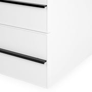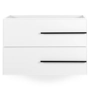Mască lavoar, 2 sertare Bella. Amenajați baia cu o mască pentru lavoar cu 2 sertare din gama Bella, cu care să dați un aer fresh acesteia. Această mască este construită din panouri aglomerate din lemn, finisajul în alb lucios cu negru emanând o cromatică frumoasă care vă va capta atenția. Cele 2 sertare sunt potrivite pentru a vă depozita lucrurile utile băii, acestea fiind suficient de încăpătoare.