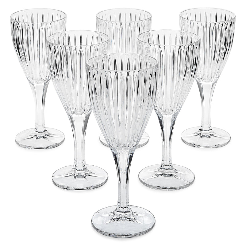 Set 6 pahare vin alb Skyline. Paharele din gama Skyline sunt versatile și completează cu stil vesela din bucătăria voastră. Sunt ideale pentru zilele când aveți oaspeți și vreți să îi surprindeți cu un vin bun. Paharele au un aspect plăcut și sunt confecționate din sticlă cu un finisaj lucios, iar detaliile îi oferă un aspect rafinat.