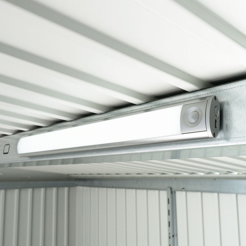 Lampă LED Storage. Lampa LED din gama Storage este un accesoriu necesar pentru magazia voastră. Aceasta funcționează cu baterii, are senzor de mișcare și întrerupător de lumină permanent. Atașarea este rapidă și ușoară datorită magnetului ce se află pe spatele acesteia și are inclus un cablu de încărcare USB.